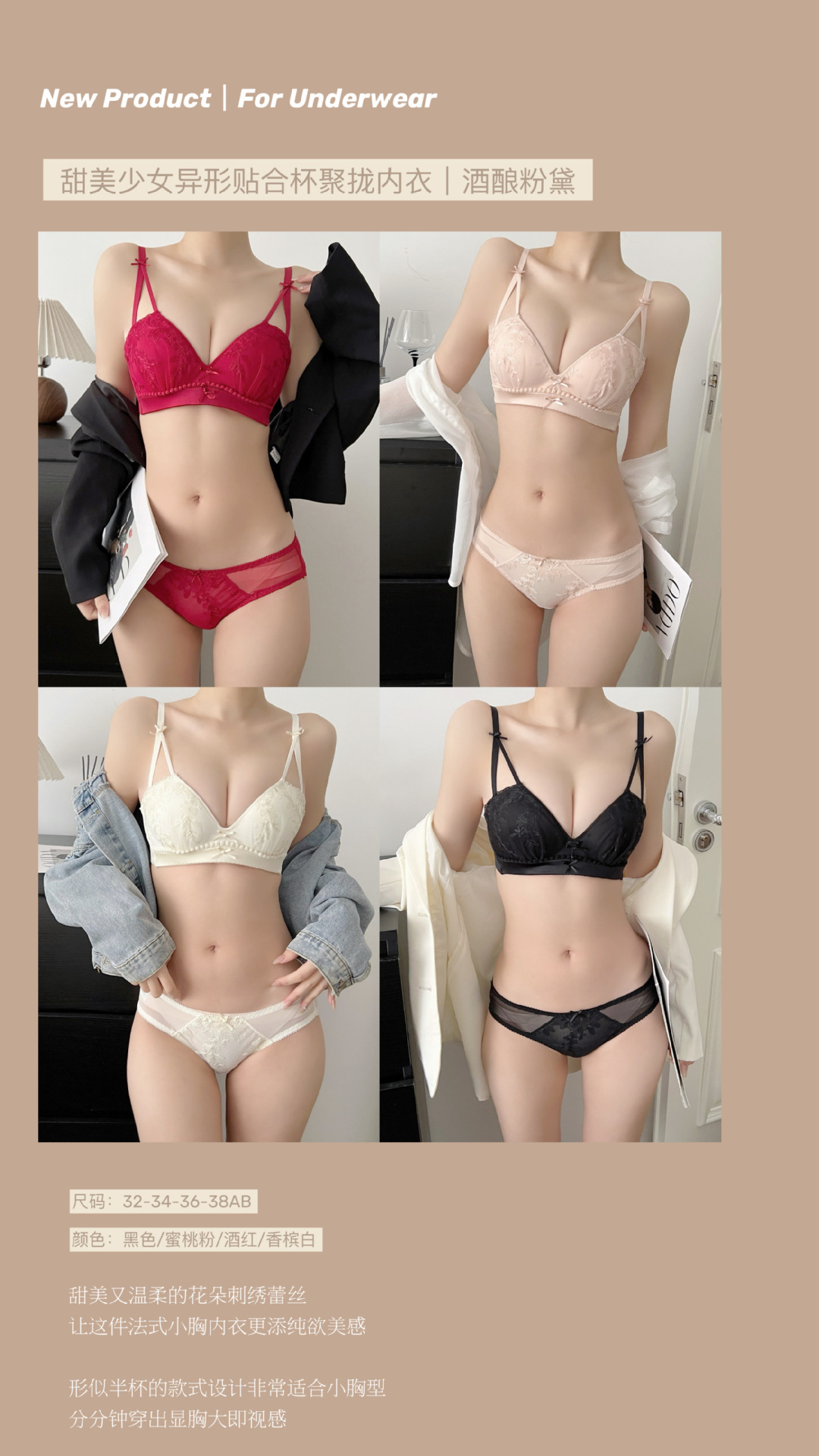 Ventas directas de fábrica comercio electrónico transfronterizo Sudeste de Asia Vietnam Tailandia damas francés media taza pecho pequeño recogido sujetador Tovin