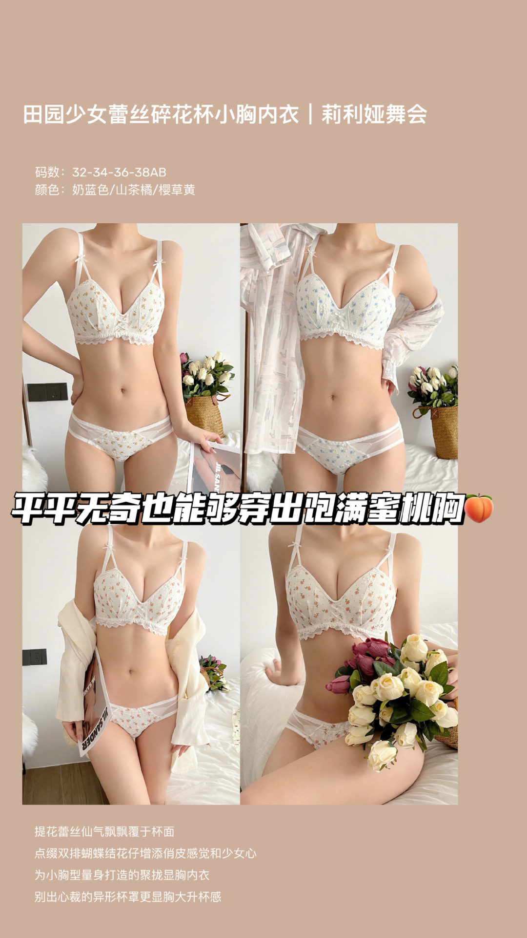 Venta directa de fábrica comercio electrónico transfronterizo Sudeste asiático Vietnam Tailandia damas francés pecho pequeño recogido sujetador floral