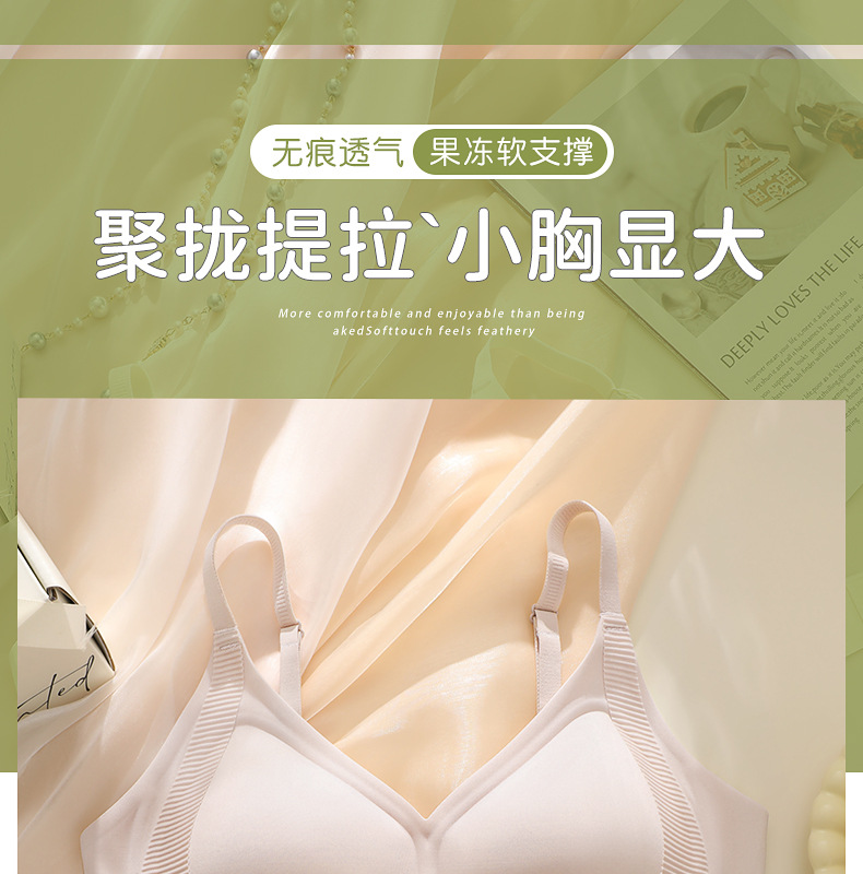 Los senos pequeños de la ropa interior se juntan, antiflacidez, sujetador sin anillo de acero, los senos pequeños muestran un soporte grande y suave, ropa interior sin costuras