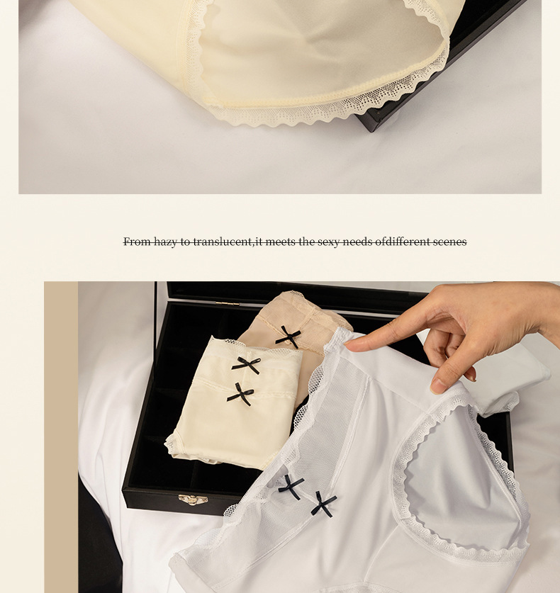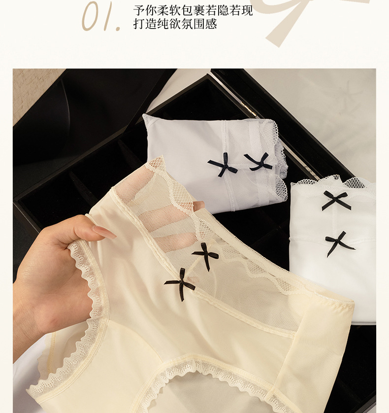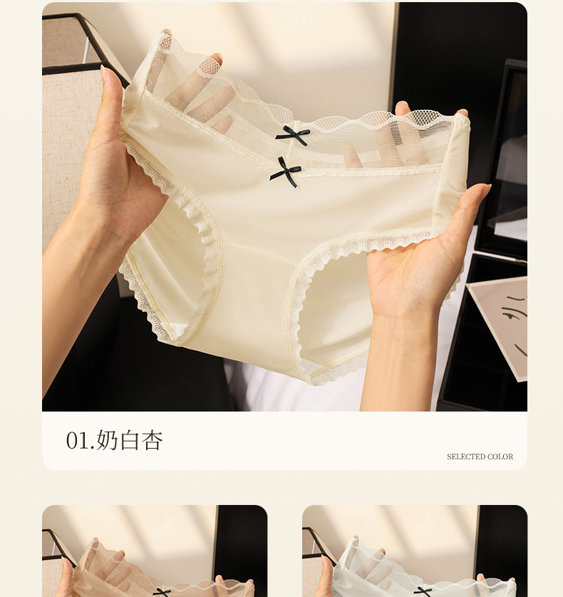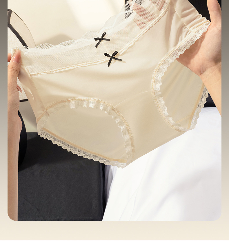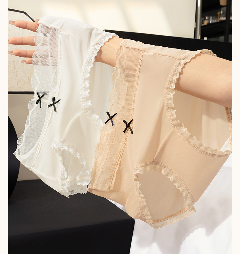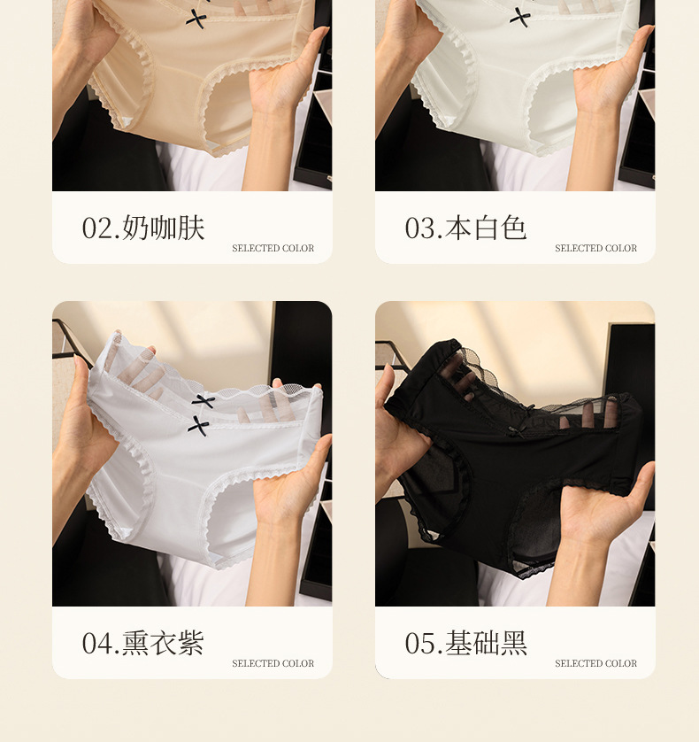 Calzoncillos de seda de hielo de entrepierna de algodón fino de verano para mujer 2025 nueva ropa interior de mujer de malla de encaje