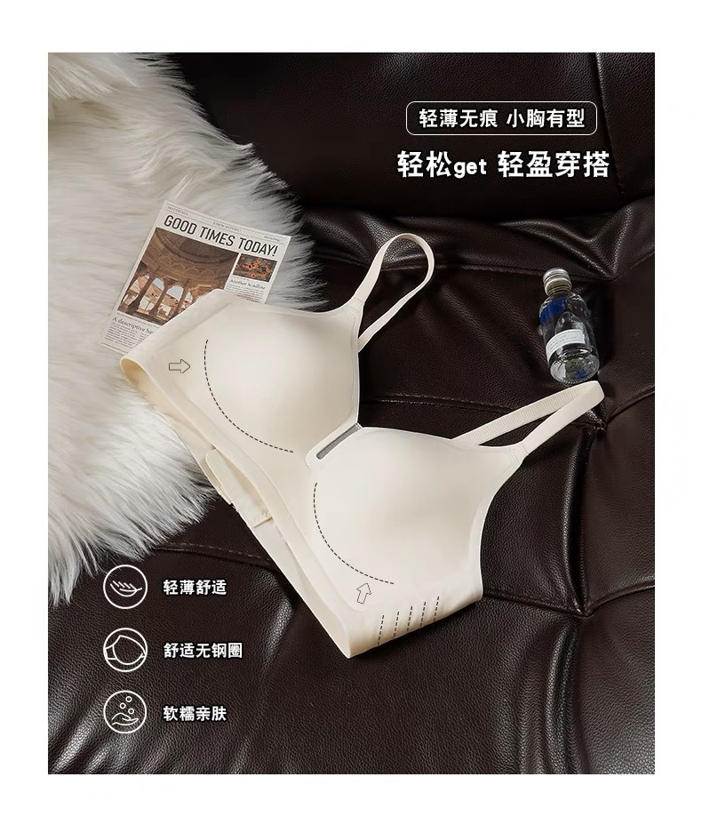 Sin costuras, cómodo, transpirable, sección delgada, recogida lateral, soporte superior, leche antideslizante, ropa interior antiflacidez, sujetador de texto para niña
