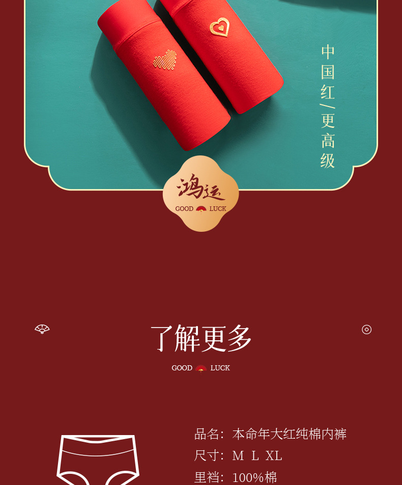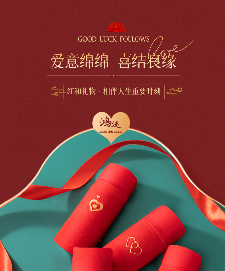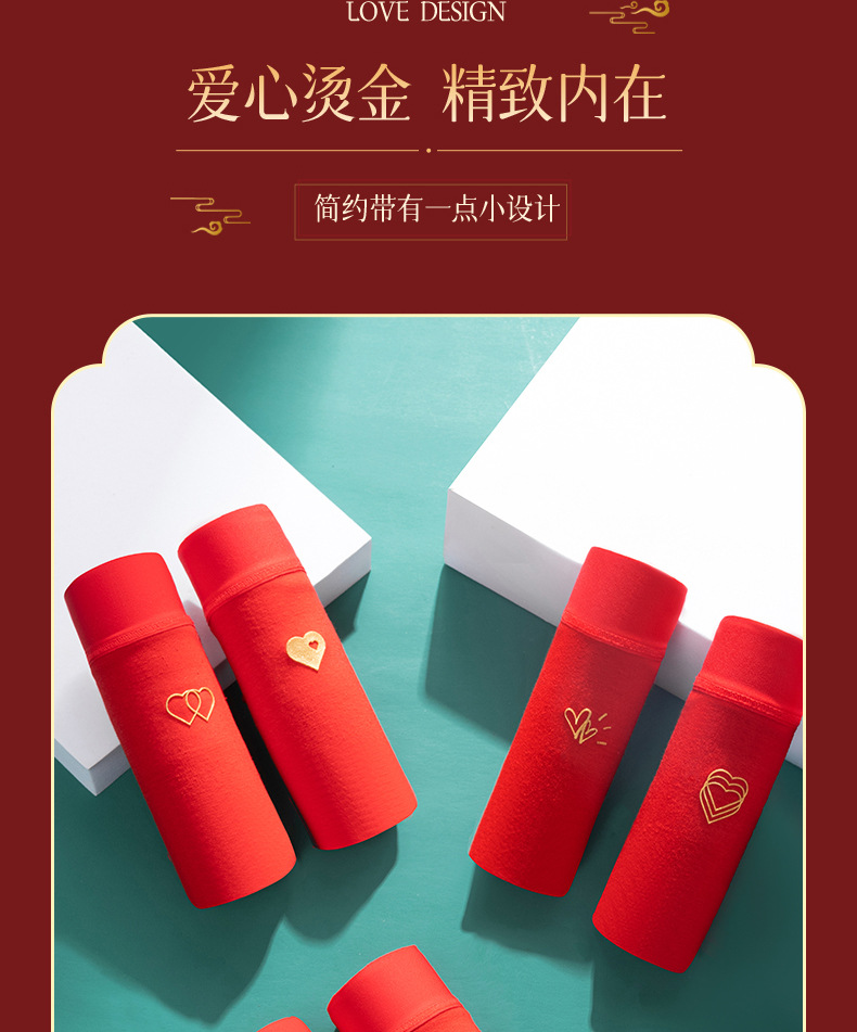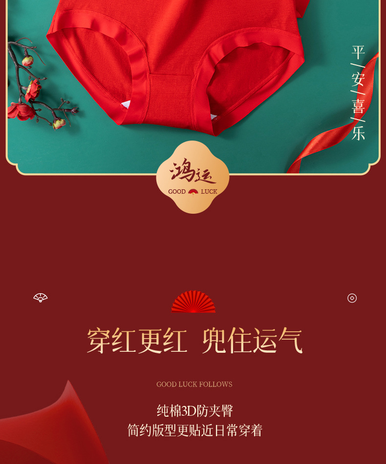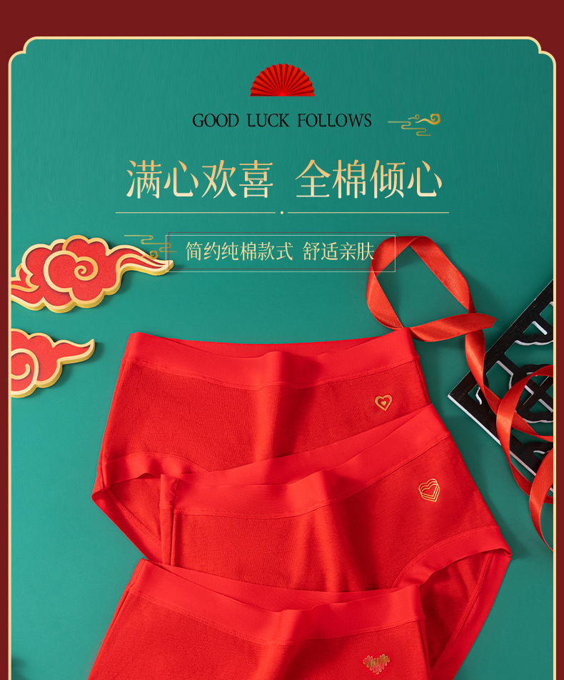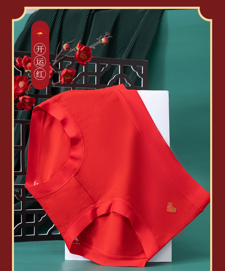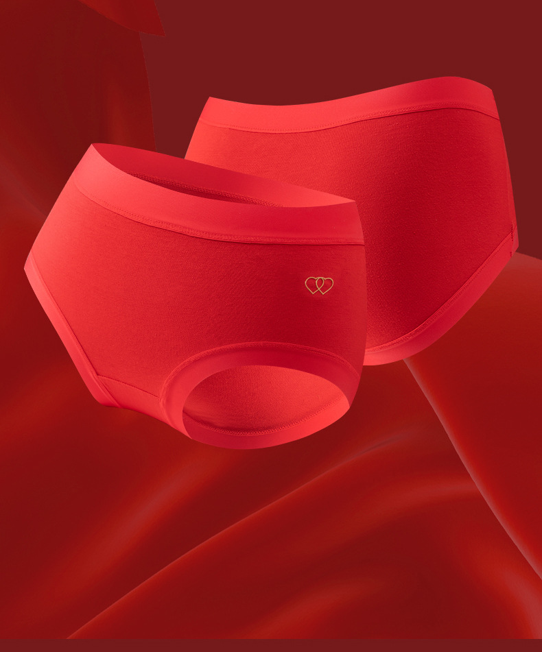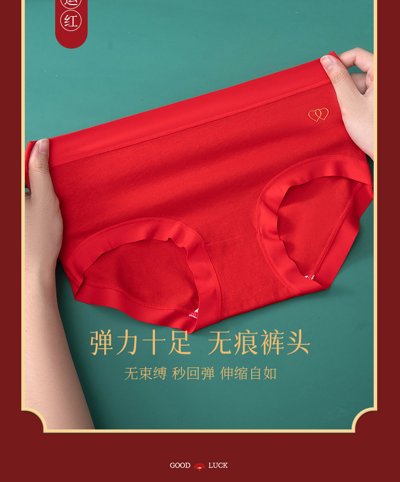 Año de nacimiento ropa interior de algodón de las mujeres entrepierna antibacteriana mediados de cintura sin costuras más tamaño pantalones cortos cabeza boda ropa interior roja