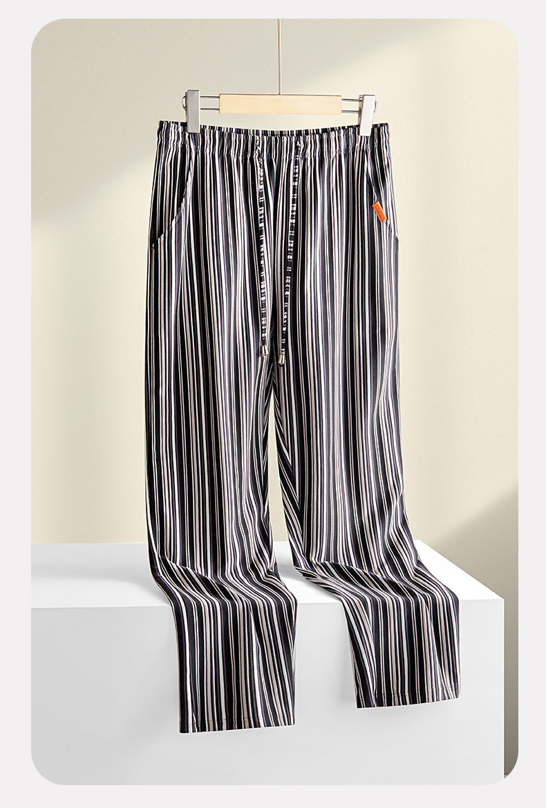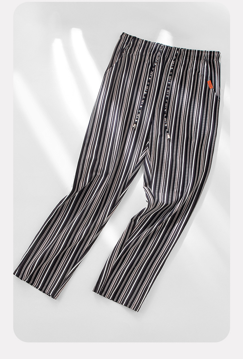 [Hilo doble teñido en hilo] Los nuevos pantalones de rayas de algodón para hombres pueden salir a hacer ejercicio, pijamas sueltos, pantalones casuales con cordón