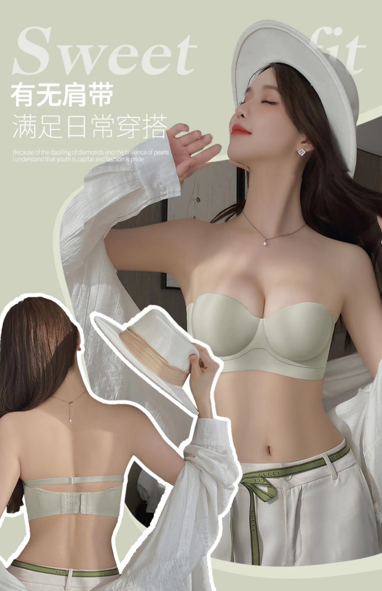 No deja marcas, dos desgaste, recolección lateral, recolección, soporte superior, antideslizante, leche auxiliar, ropa interior antiflacidez, sujetador de texto para niña, senos pequeños, grandes