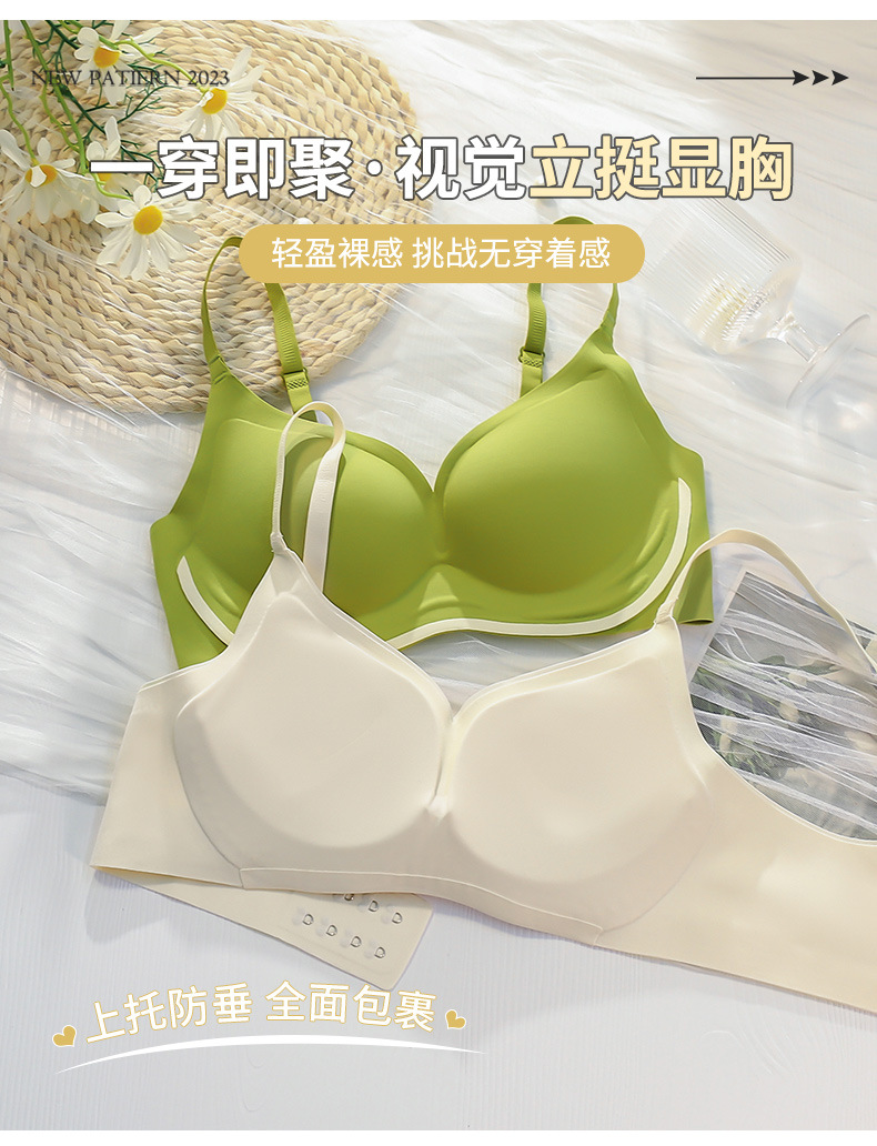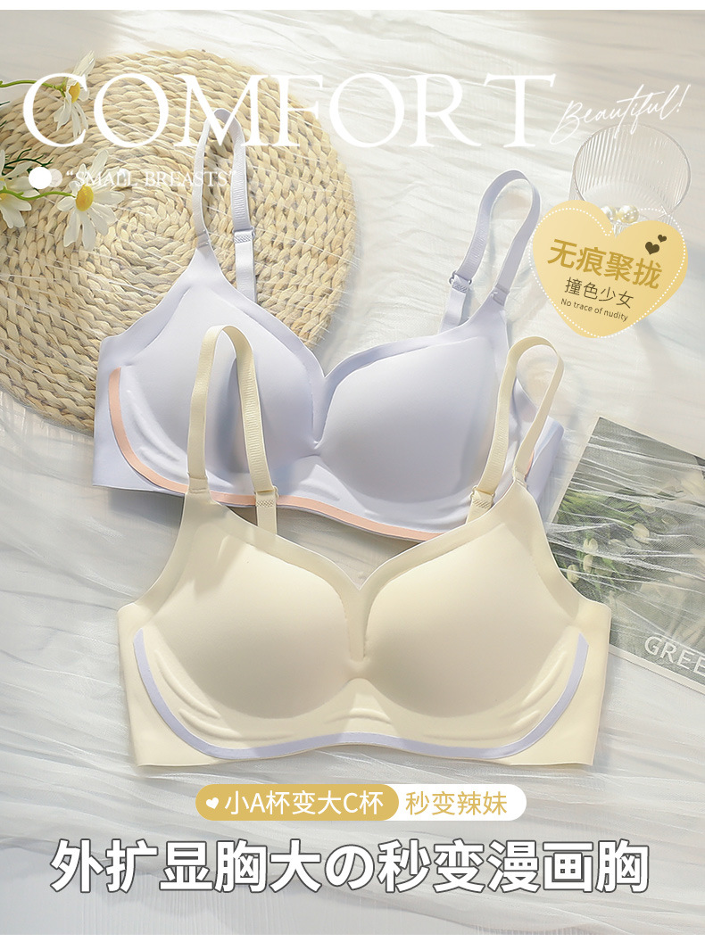 Ropa interior sin costuras Pecho pequeño push up anti-caída Sujetador de niña grande Sujetador deportivo inalámbrico Copa fija Ropa interior