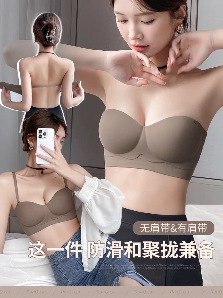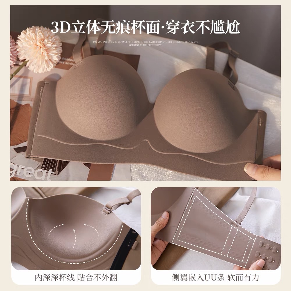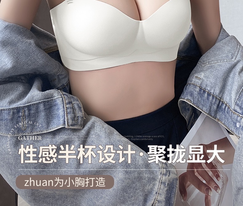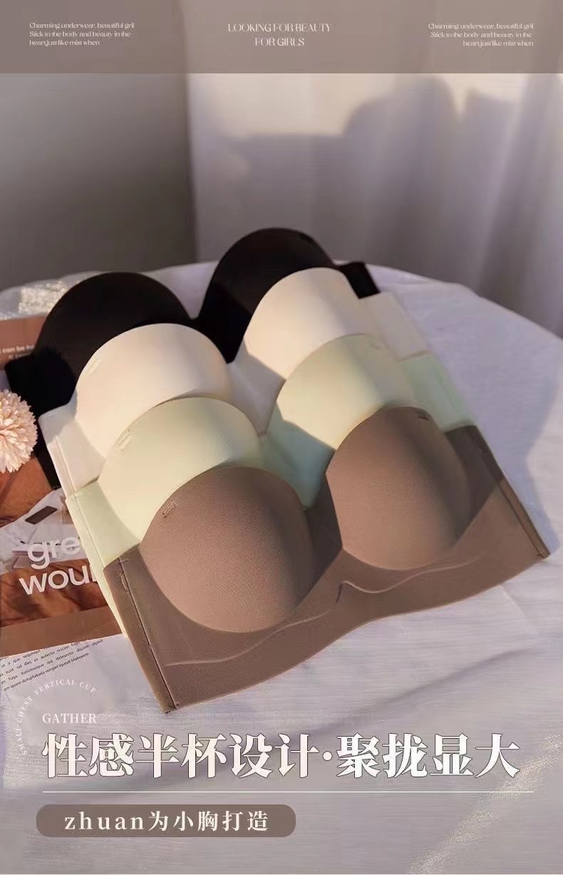 Sin costuras, sin tirantes, dos prendas, juntas, soporte superior, senos antideslizantes, ropa interior antiflacidez, sujetador de niña, senos pequeños, grandes