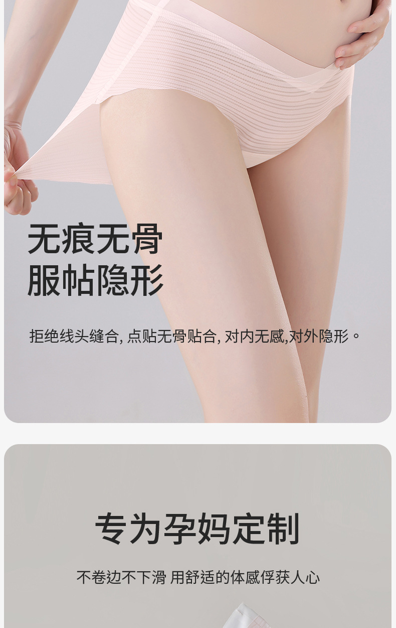 Ropa interior de maternidad sin costuras, refrescante verano, ligero y transpirable, pantalones cortos de seda de hielo para mujer, cintura baja, talla grande sin costuras, embarazo