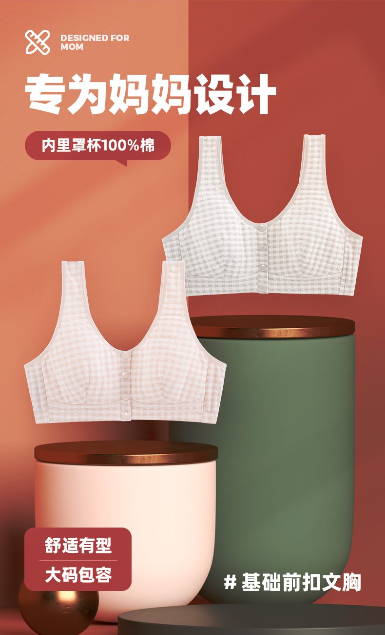 Ropa interior de la madre Sujetador de hebilla frontal para mujer Sujetador de talla grande para mujer Ropa interior de mediana edad y ancianos Estilo Chaleco delgado de verano sin anillo de acero