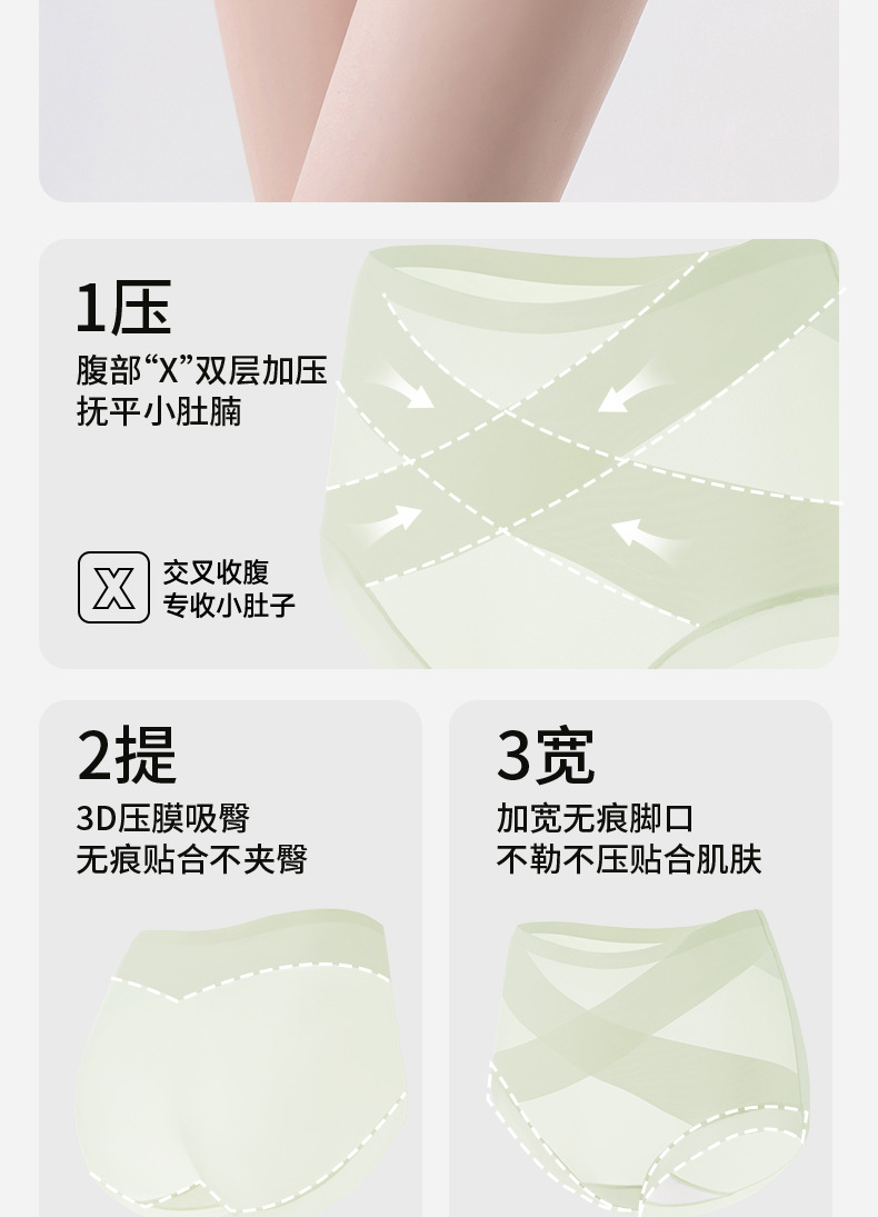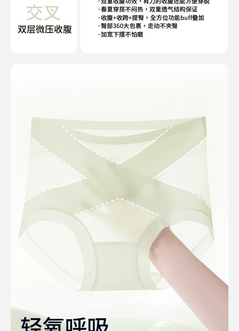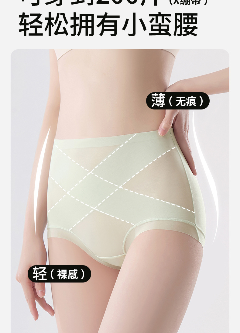 Ropa interior de abdomen sin costuras, entrepierna de algodón para mujer, entrepierna antibacteriana, forma de cadera, seda de hielo posparto, cintura alta, cadera, calzoncillos para mujer