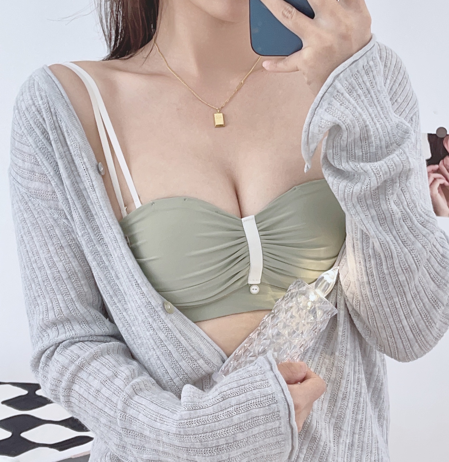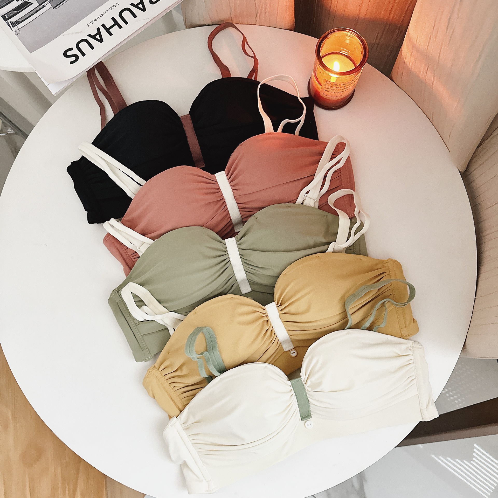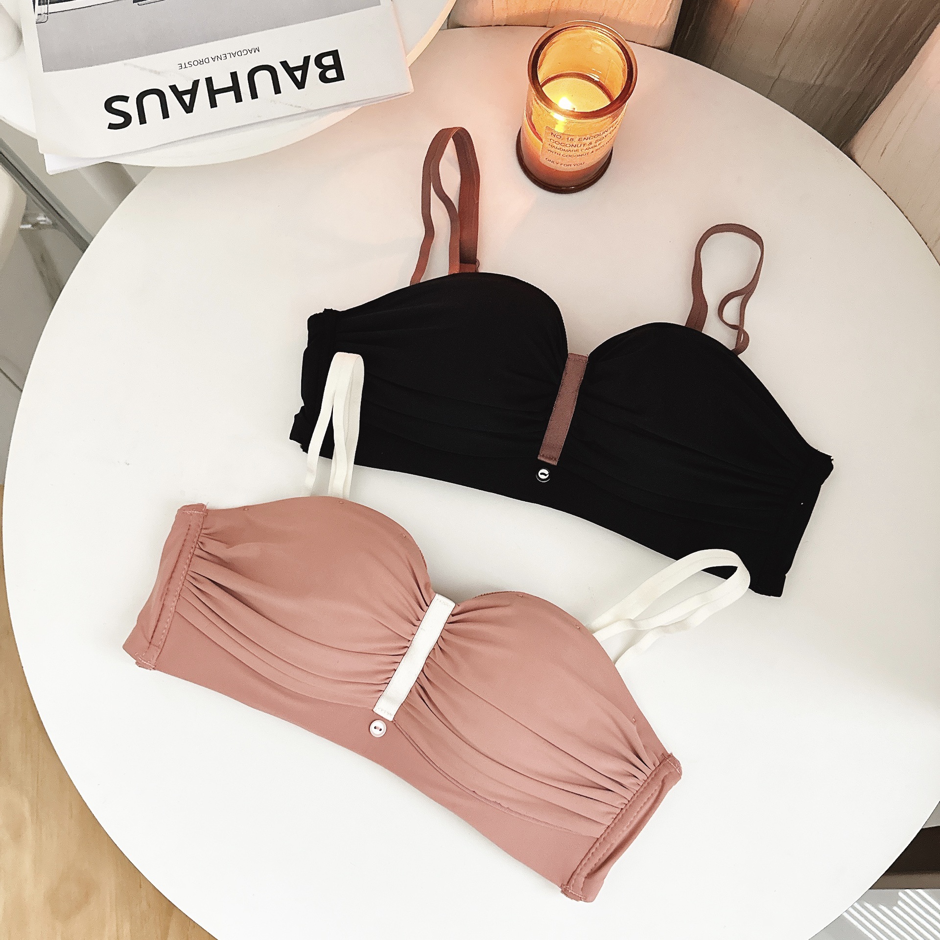 Ropa interior cómoda sin anillo de acero, pecho pequeño para niña, soporte superior, revestido lateral, sujetador de tubo fino antideslizante, sujetador invisible