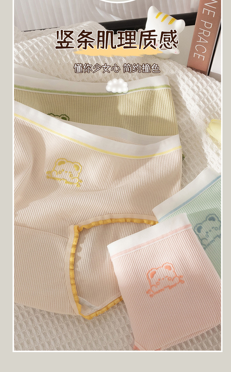 Ropa interior de algodón Niña antibacteriano entrepierna transpirable escritos lindos japoneses pantalones cortos cabeza Mediados de cintura sin costuras ropa interior de niña verano