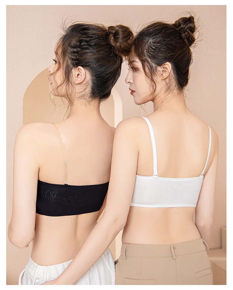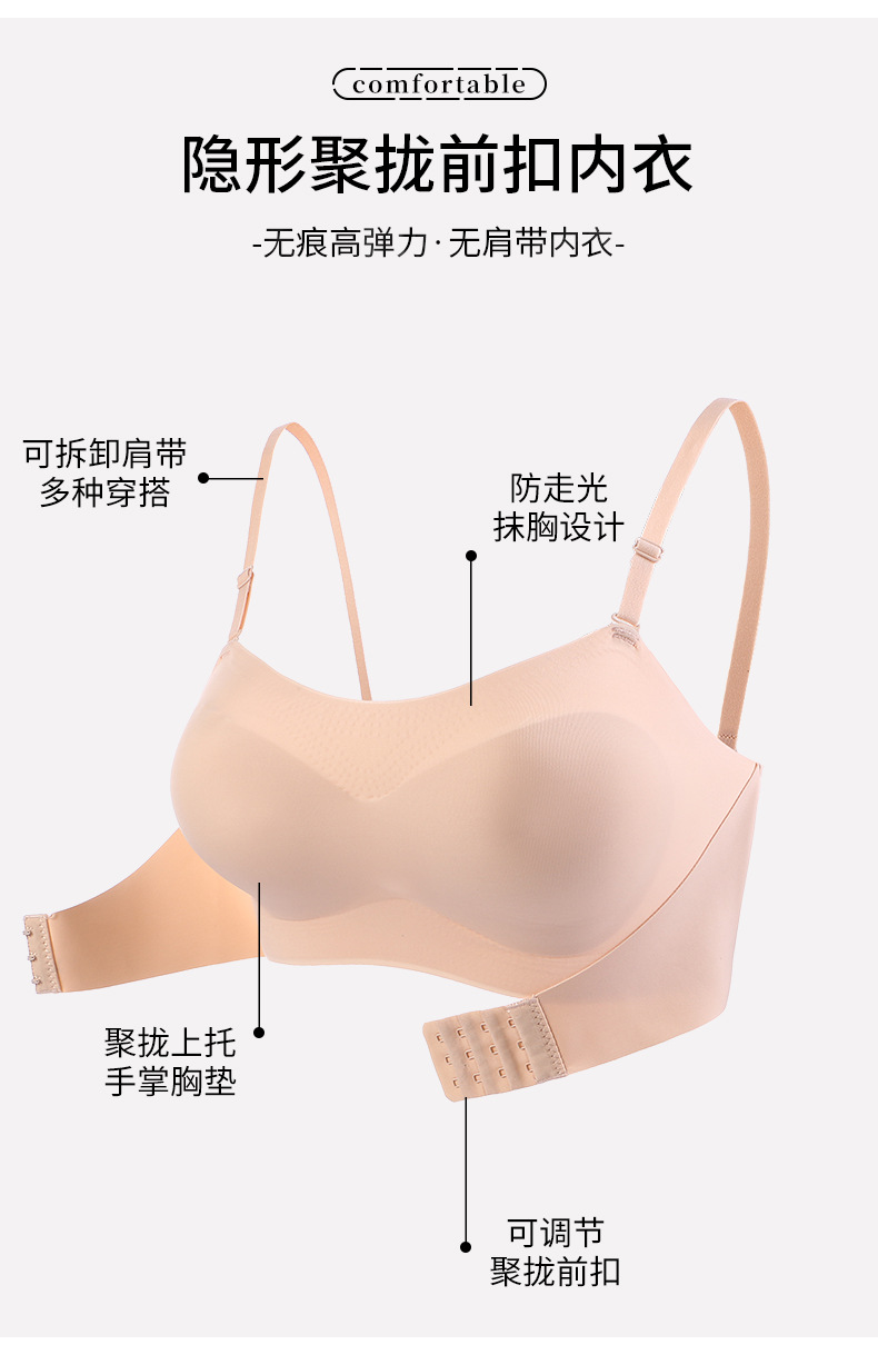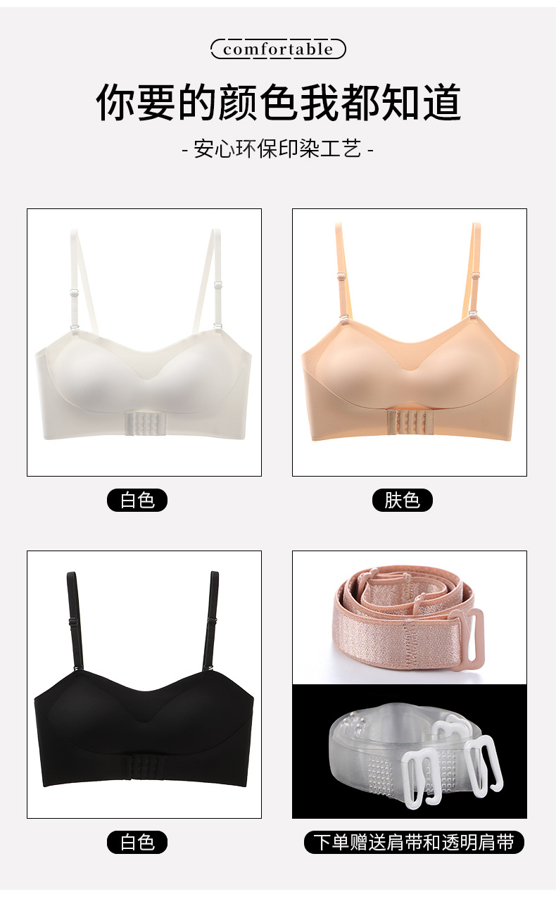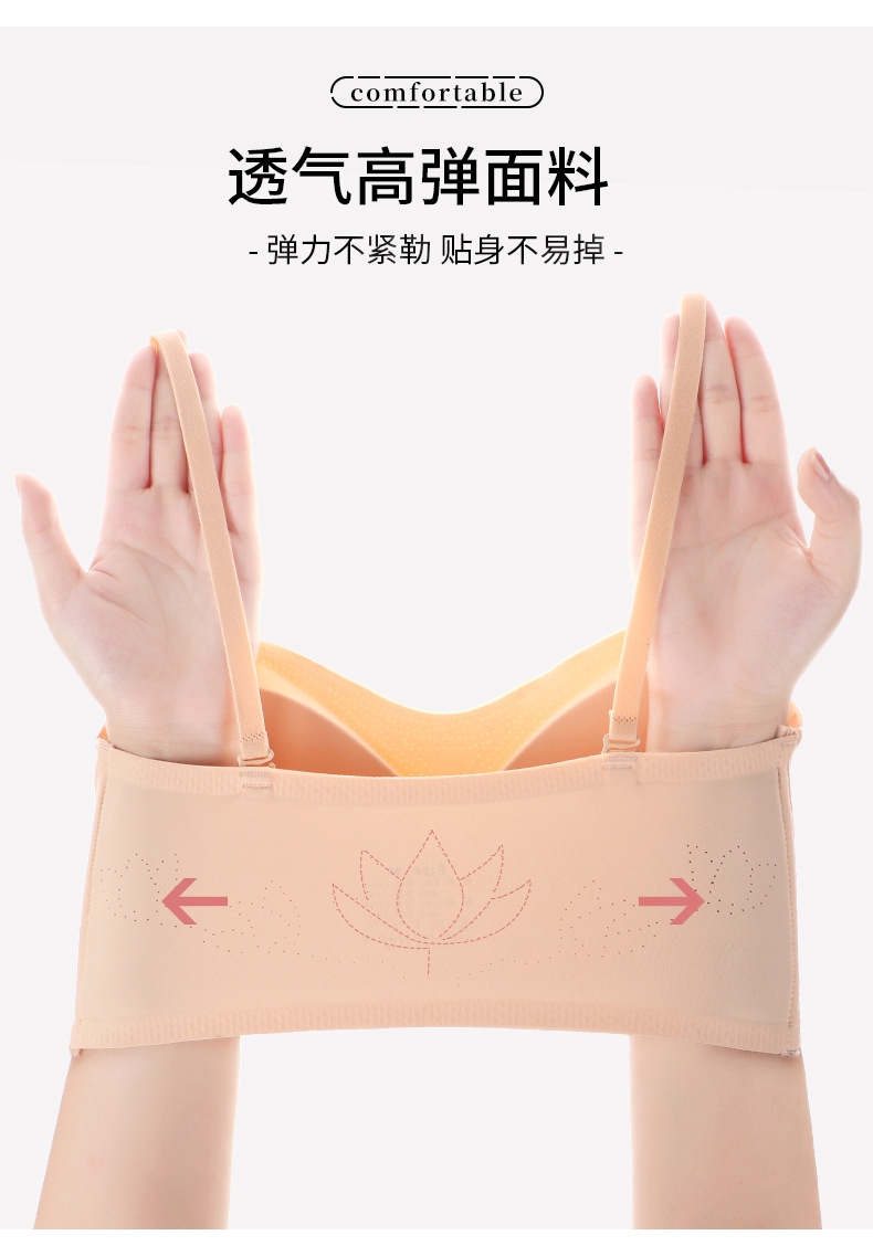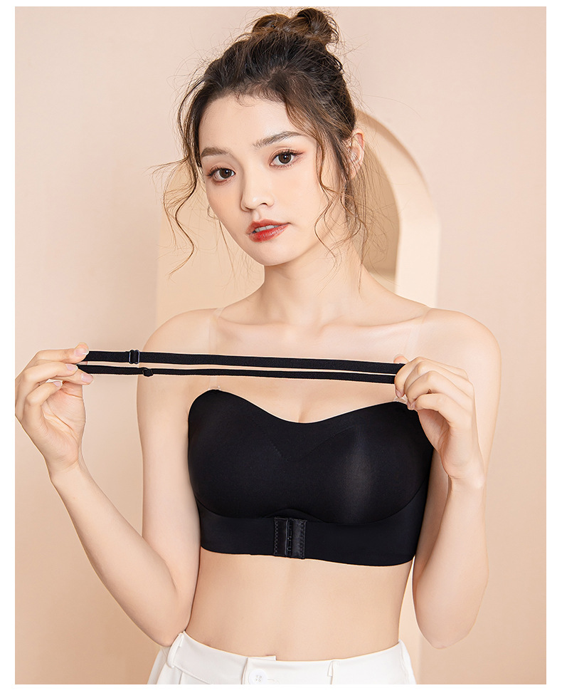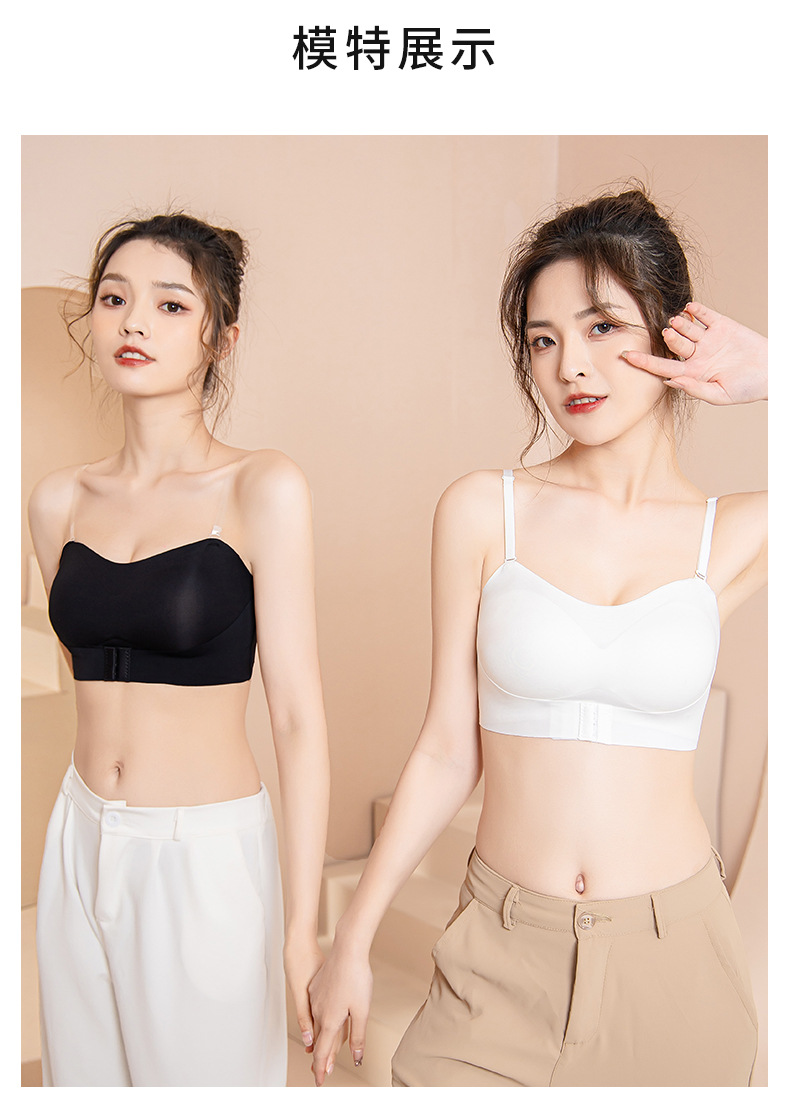 Ropa interior sin tirantes pecho pequeño de las mujeres empuja hacia arriba la parte superior del tubo de verano hebilla delantera delgada sin costuras antideslizante anti-exposición envuelto sujetador de pecho