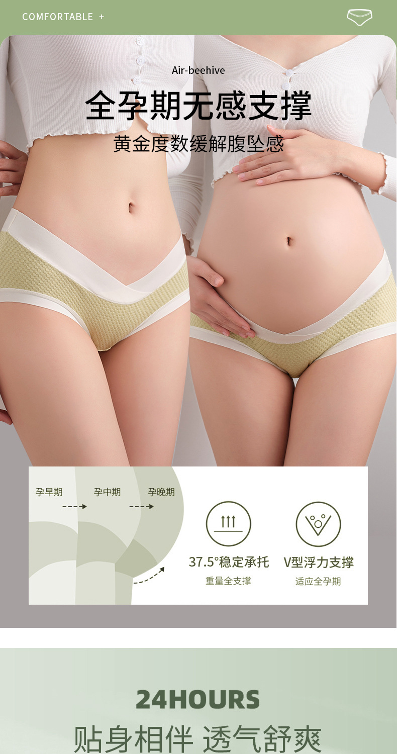 Ropa interior de las mujeres embarazadas algodón antibacteriano inferior entrepierna delgada cintura baja vientre soporte ropa interior sin costuras para el embarazo temprano, medio y tardío