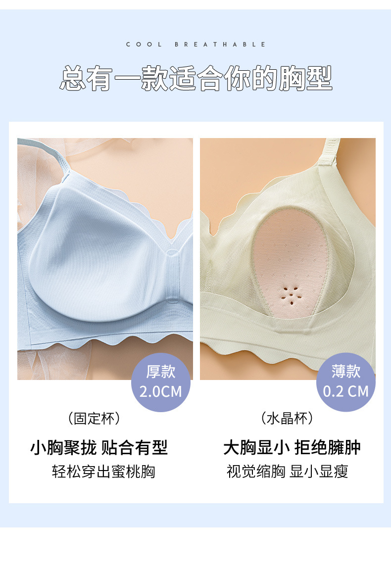 Ropa interior sin costuras verano Delgado transpirable chica sujetador pequeño pecho push up anti-sagging sujetador inalámbrico más ropa interior de tamaño