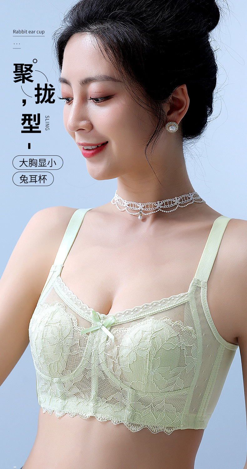 Ropa interior grande pecho pequeño verano Delgado Orejas de conejo Sujetador push up inalámbrico sujetador de mama estilo francés ropa interior para mujeres