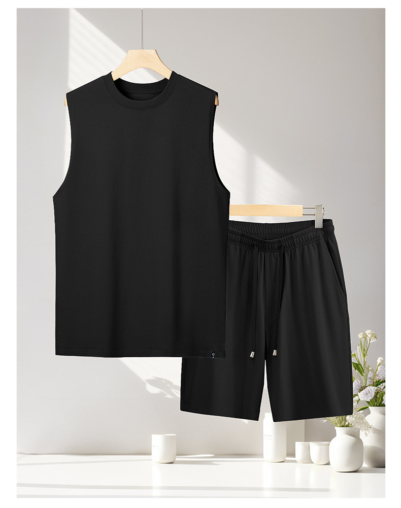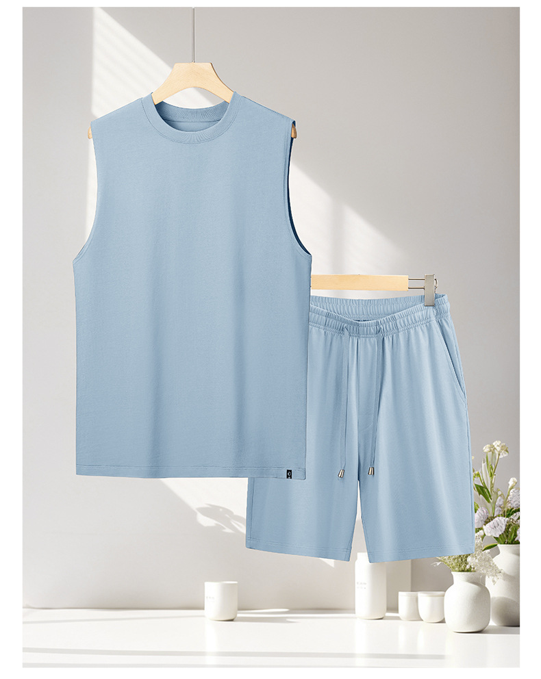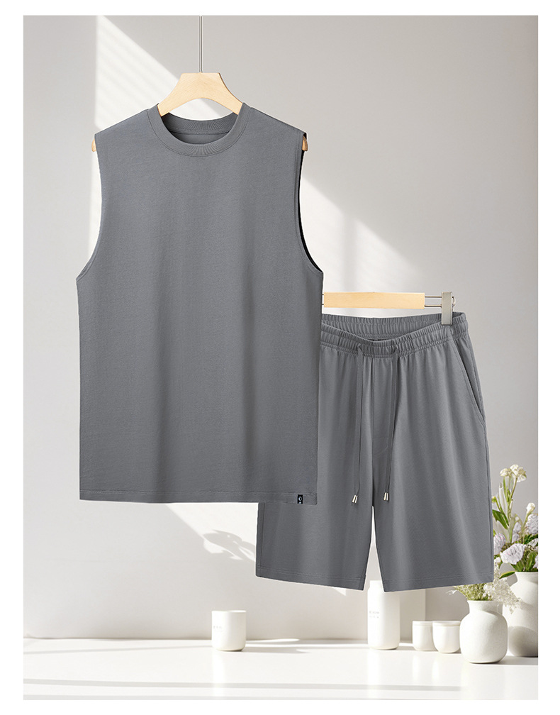 [Algodón suave de agua] Nuevos pantalones cortos de chaleco de algodón para hombre Nuevo traje de camiseta sin mangas para deportes