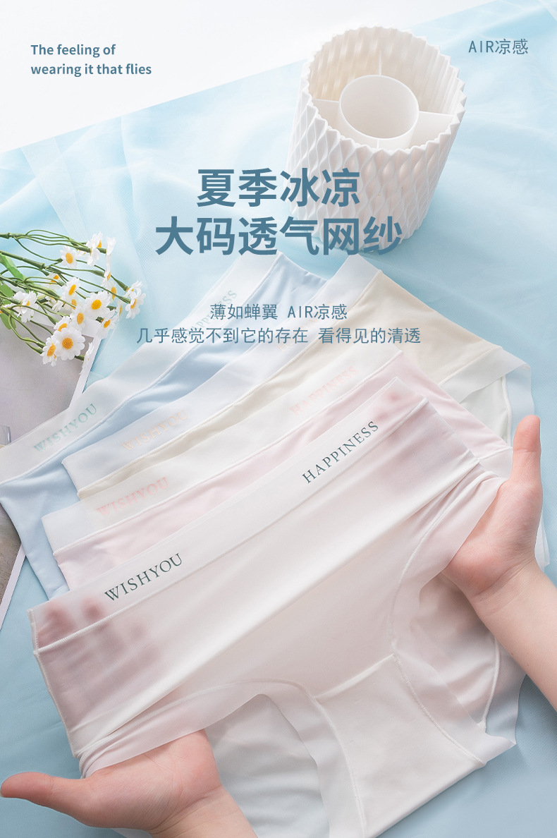 Ligero como un ala de cigarra ~ Ropa interior de cintura media y alta de gran tamaño para mujer grasa mm200 kg sin costuras seda de hielo máscara fina de dibujos animados ultrafina