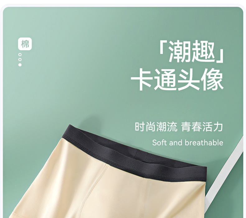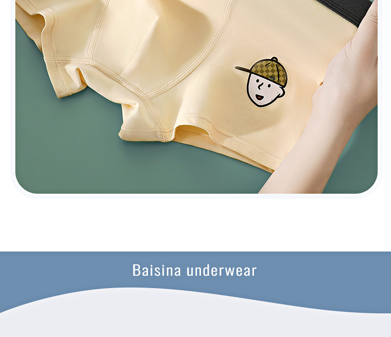 Ropa interior de los hombres de algodón puro deportes de dibujos animados Boxer shorts transpirable antibacteriano entrepierna niños Boxer shorts cabeza juventud ropa interior