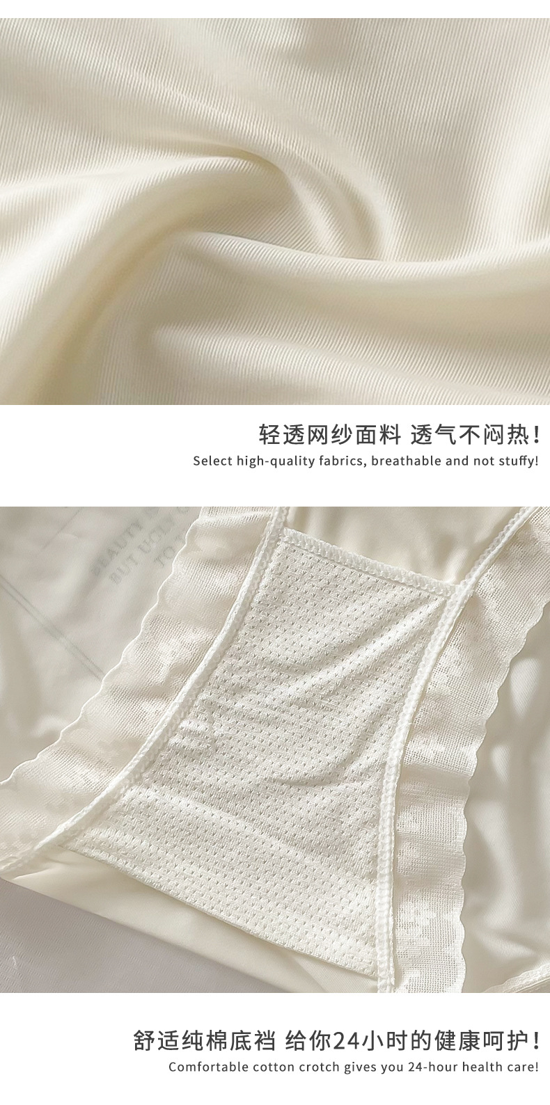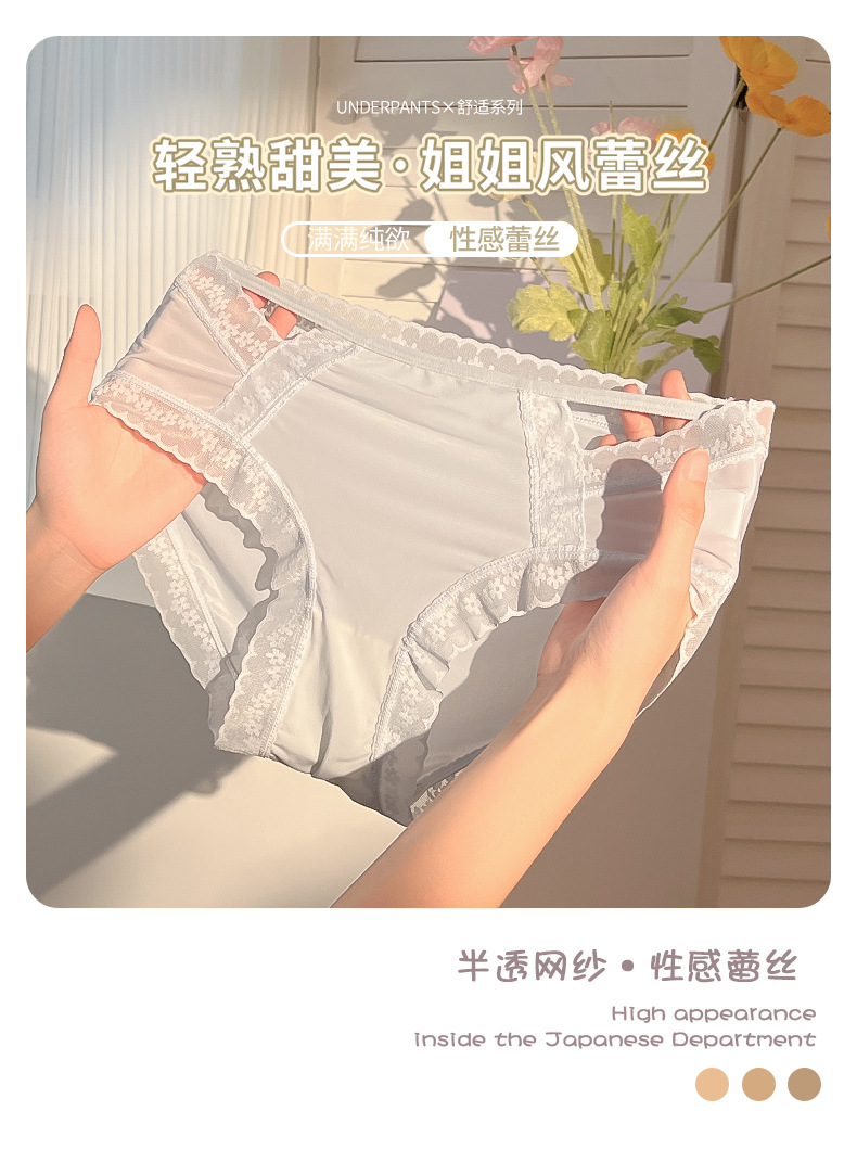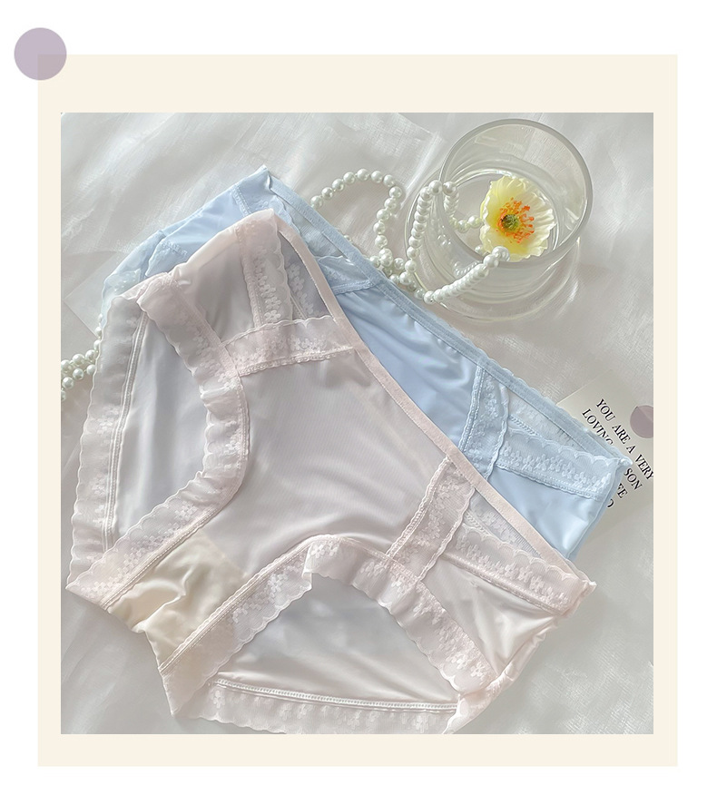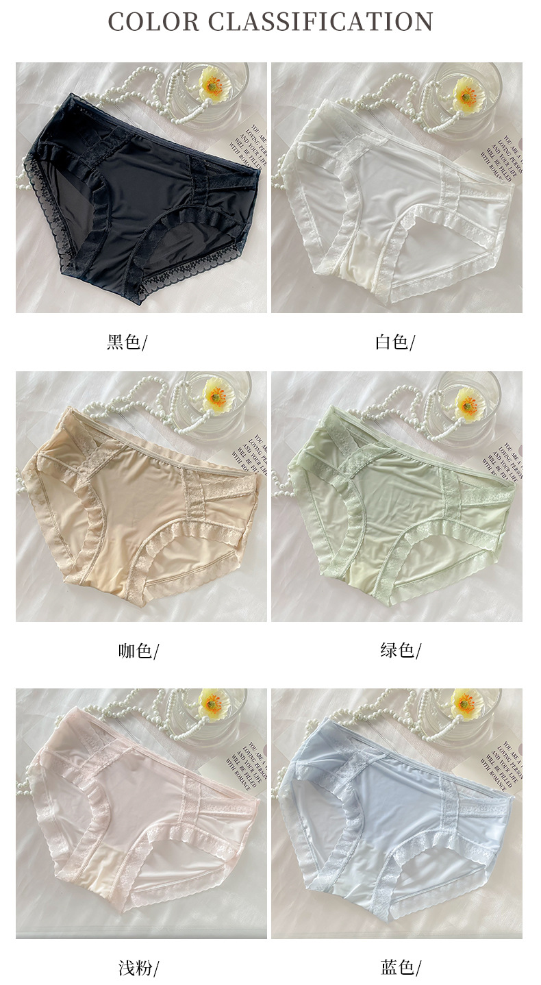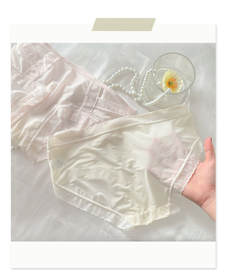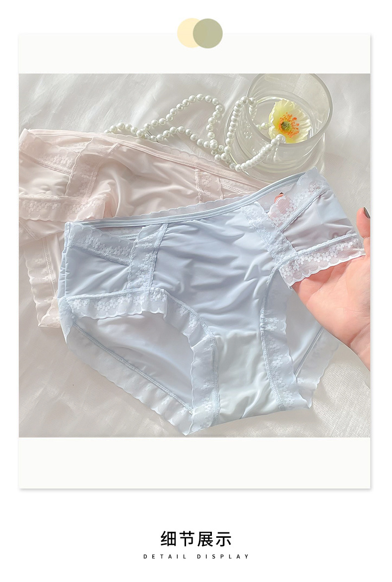 Ropa interior de encaje de las mujeres de verano delgada sin costuras cintura media sexy triángulo de seda de hielo pantalones cortos puro deseo transparente ropa interior de niña