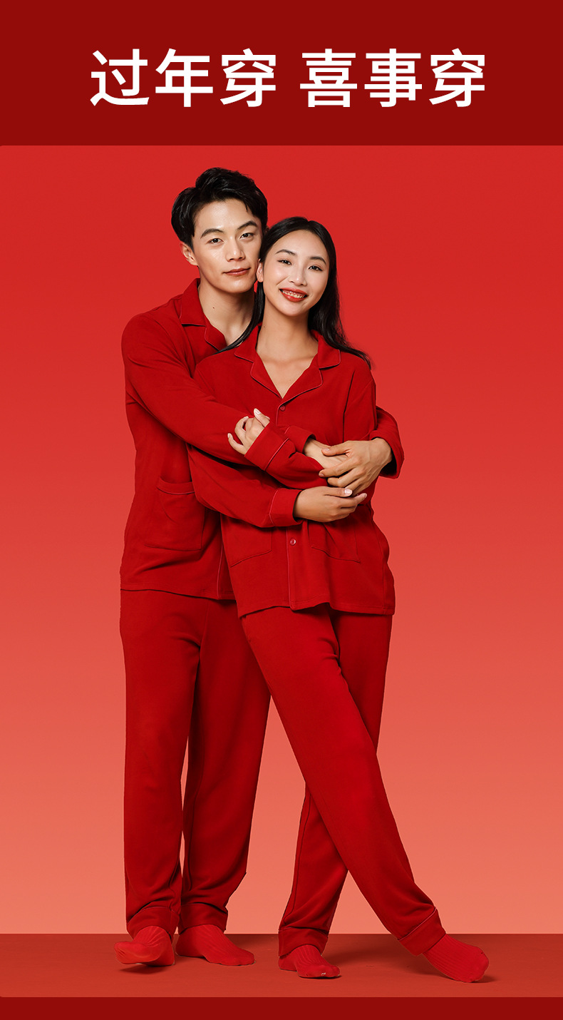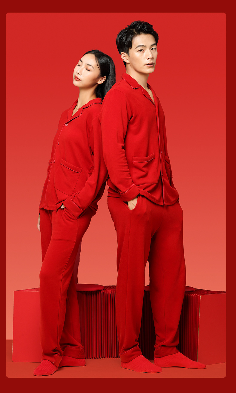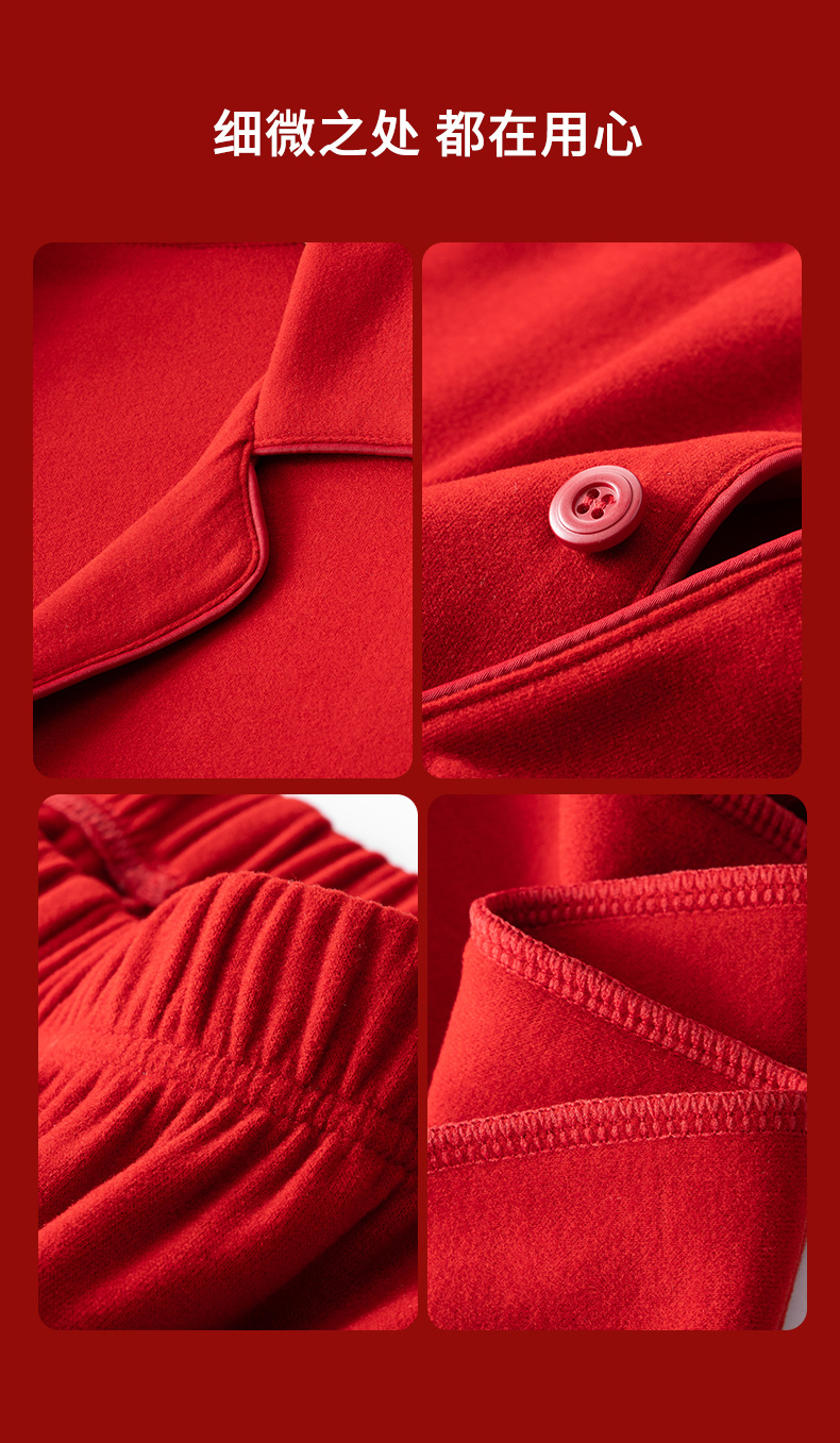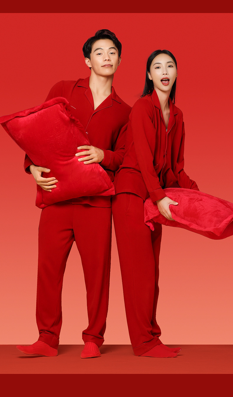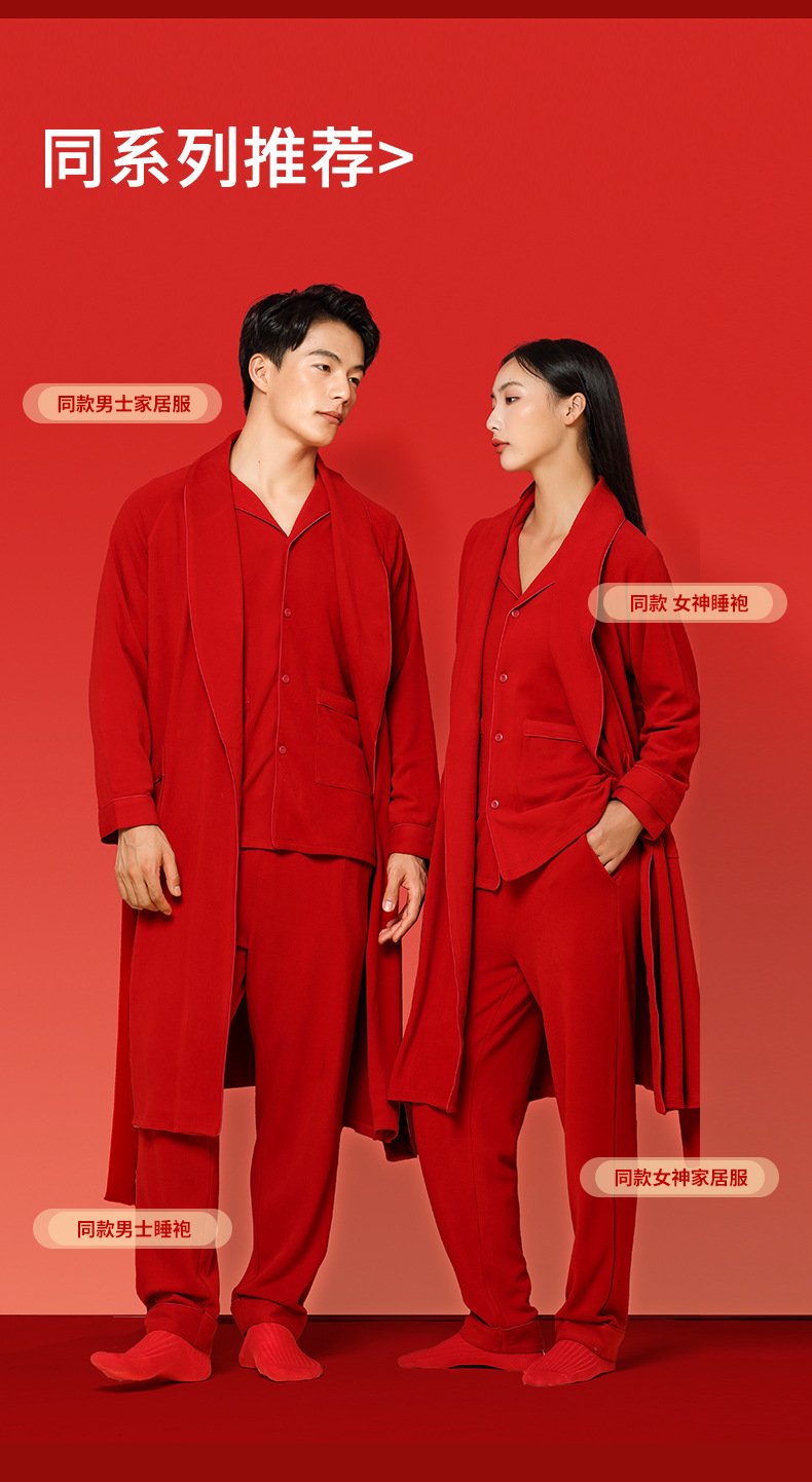 Nueva pareja de terciopelo de doble cara Tensi Pijamas de punto de nacimiento más terciopelo engrosamiento boda rojo cálido servicio a domicilio