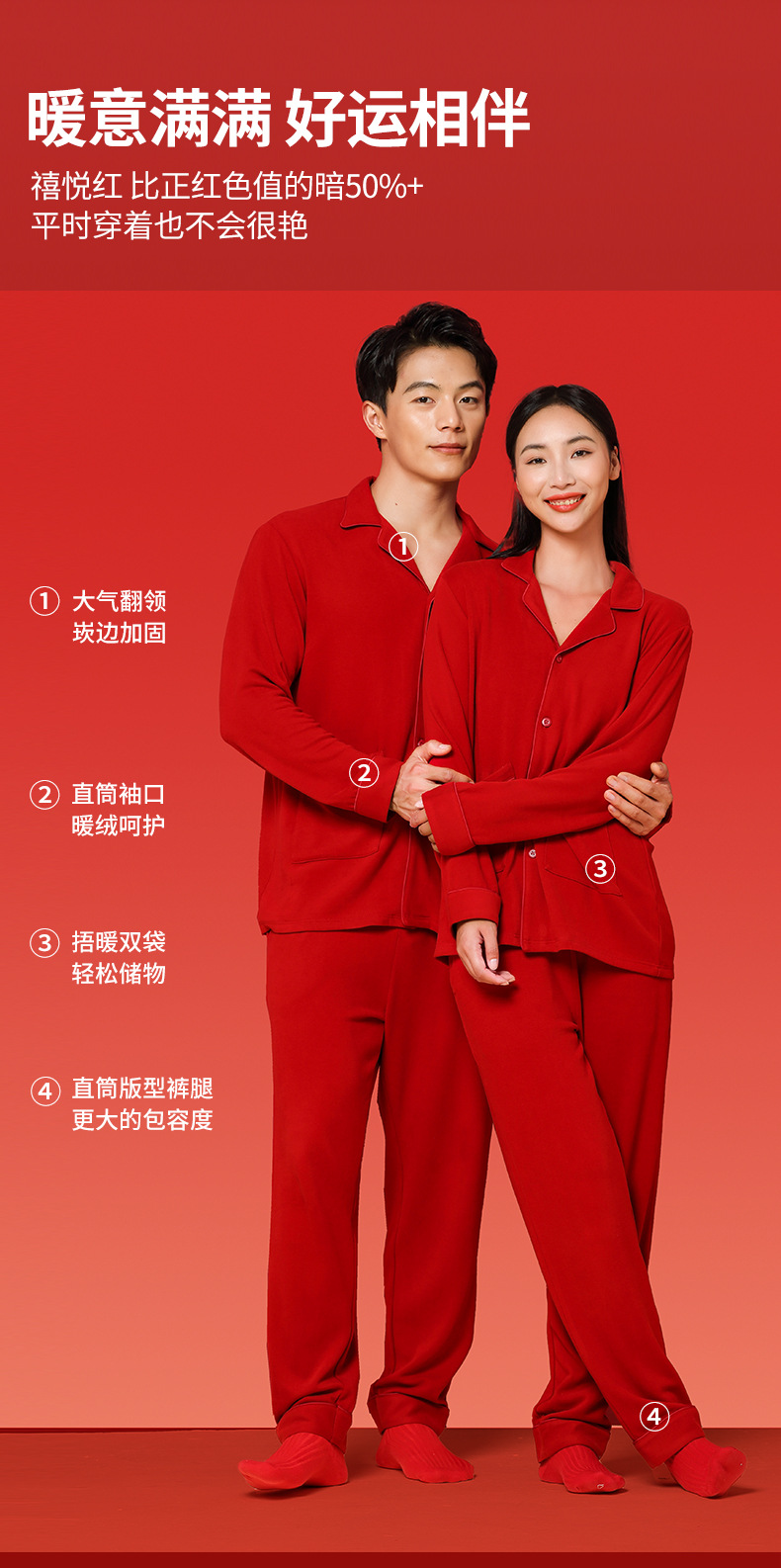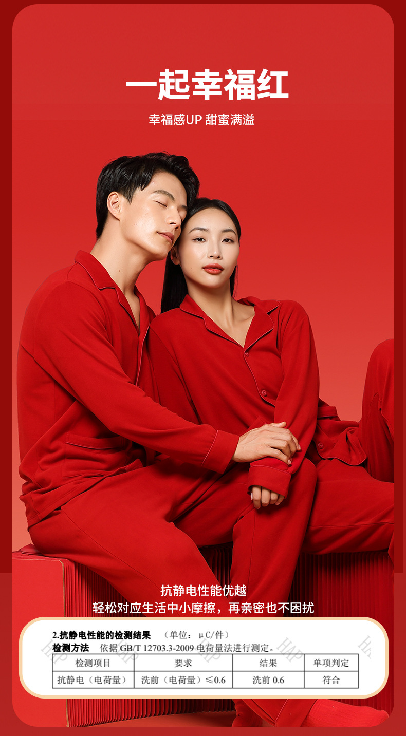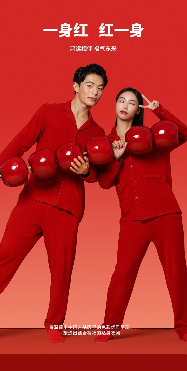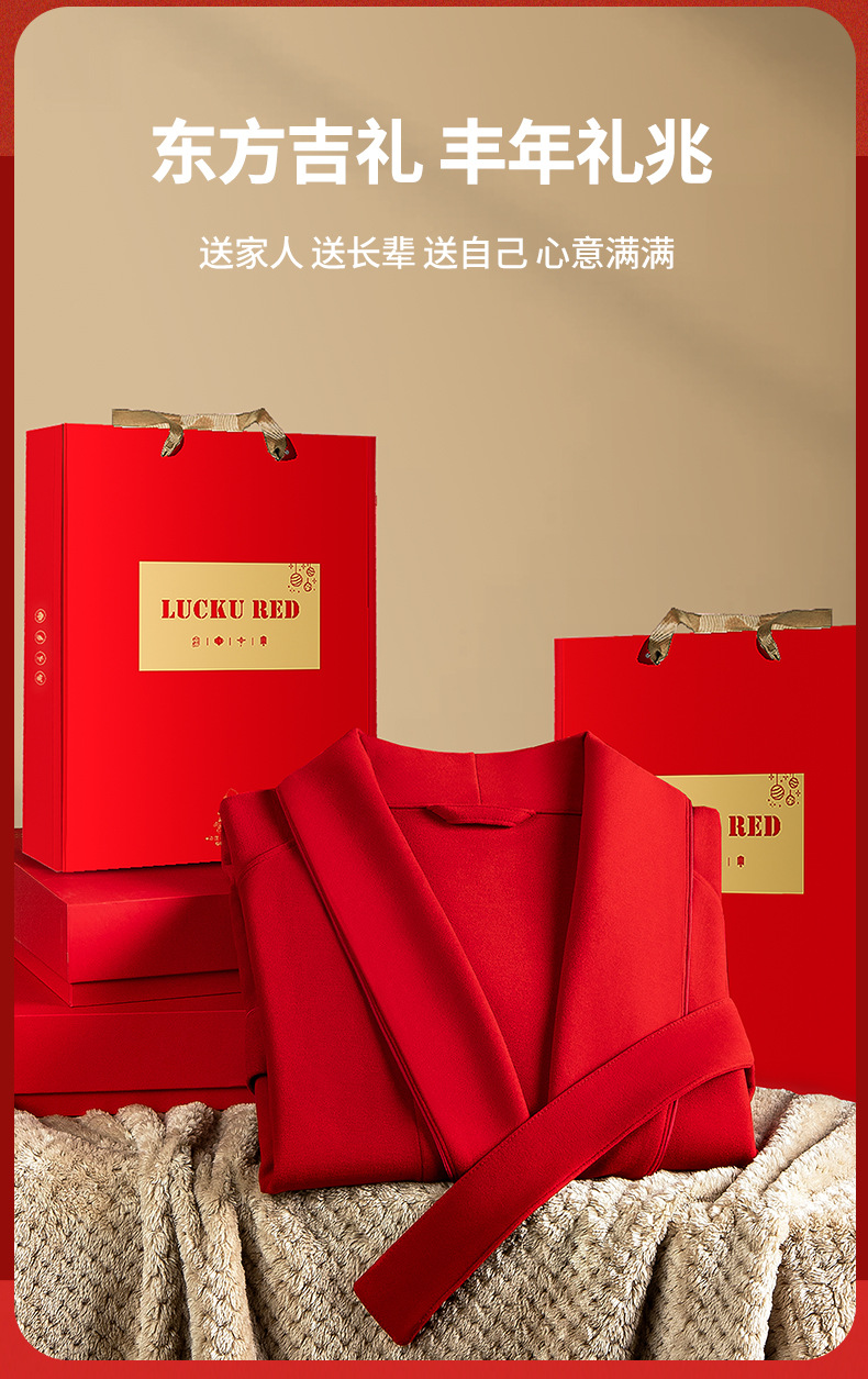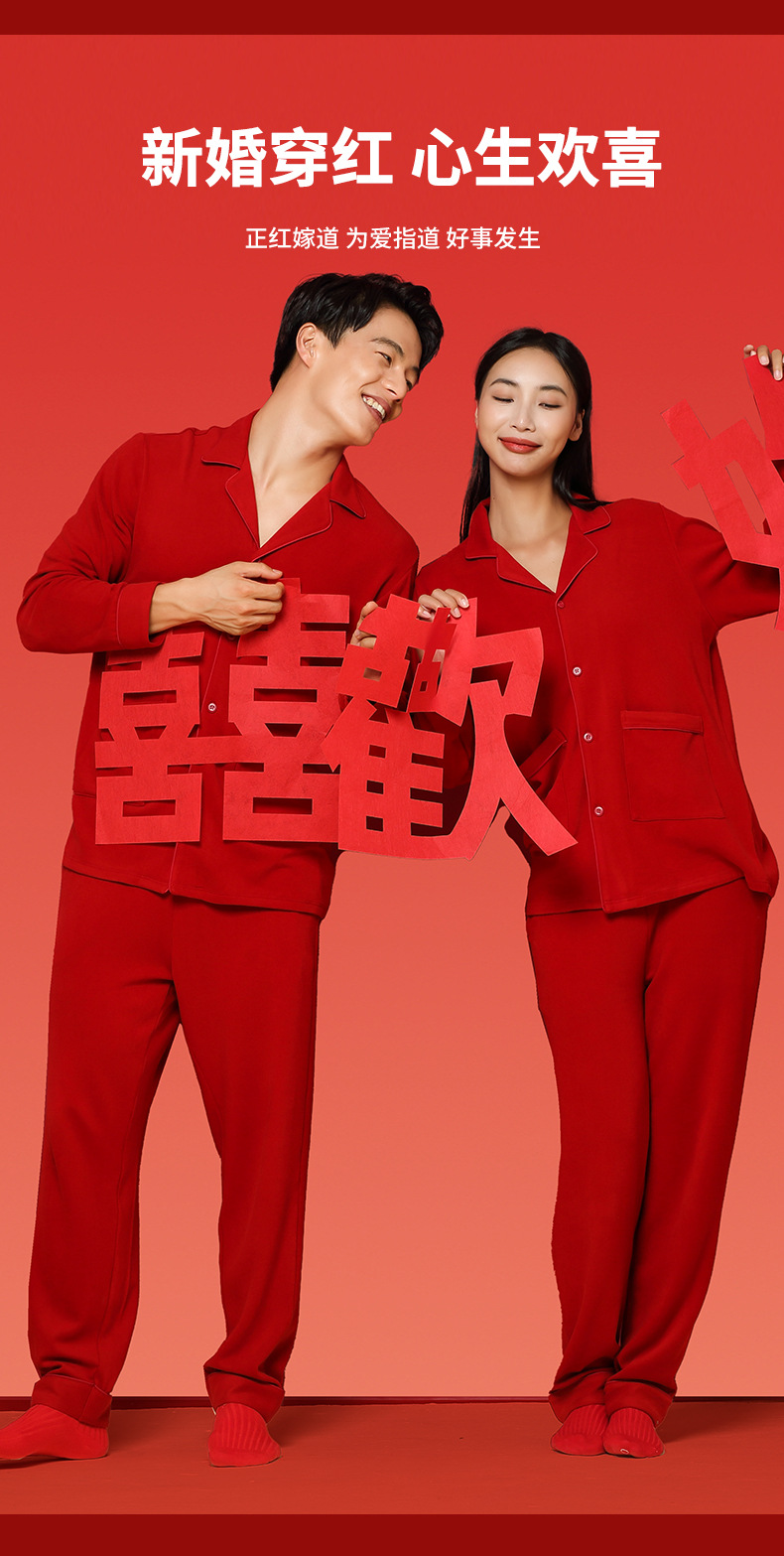 Nueva pareja de terciopelo de doble cara Tensi Pijamas de punto de nacimiento más terciopelo engrosamiento boda rojo cálido servicio a domicilio