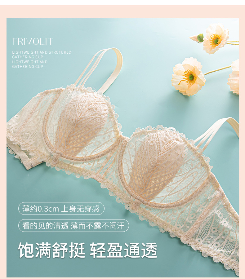 Ropa interior pecho grande pequeño Delgado anti-caída push-up sujetador encaje Orejas de conejo ropa interior chica sujetador francés al por mayor