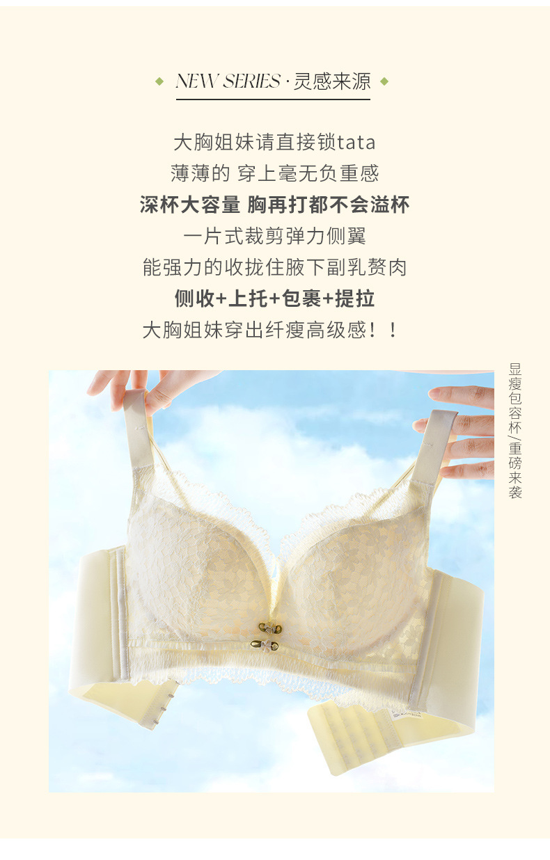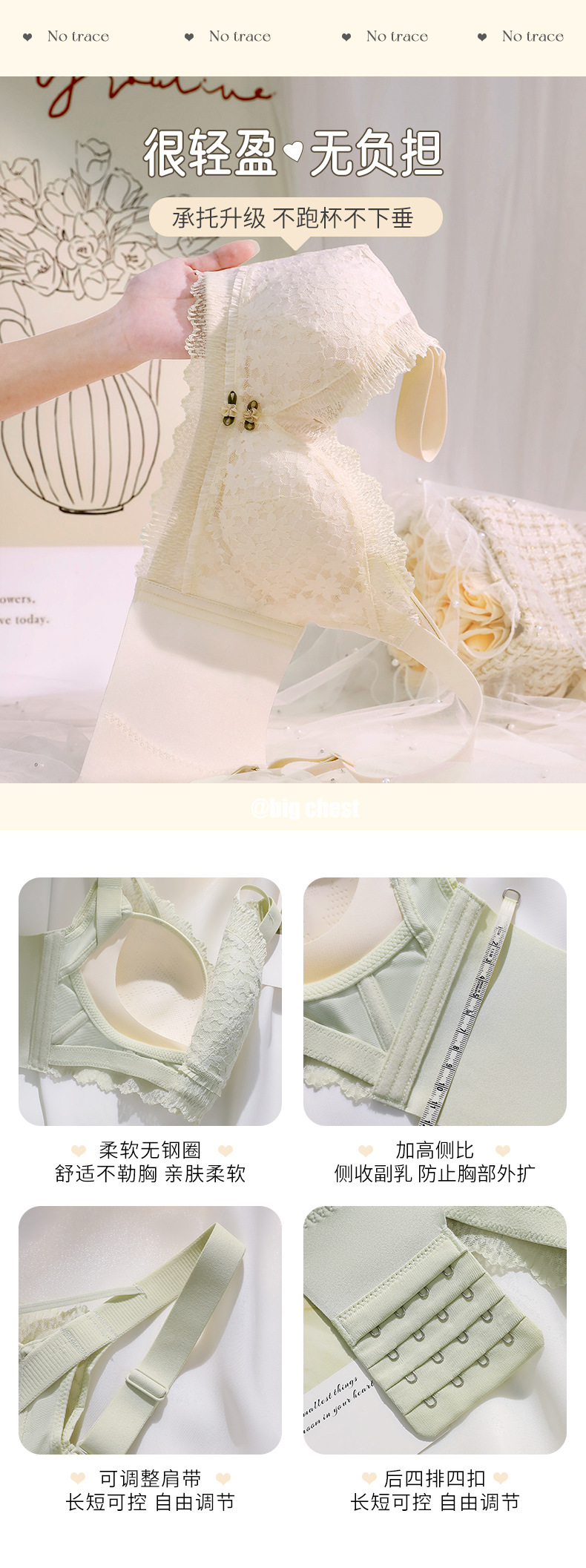 Ropa interior pecho grande pequeña ropa interior de encaje fino push up mama colección anti-flacidez pecho pequeño Sujetador push up inalámbrico para mujeres
