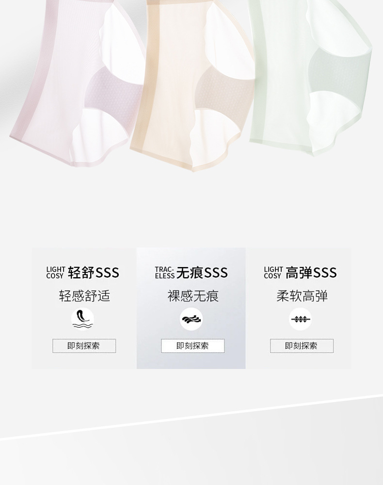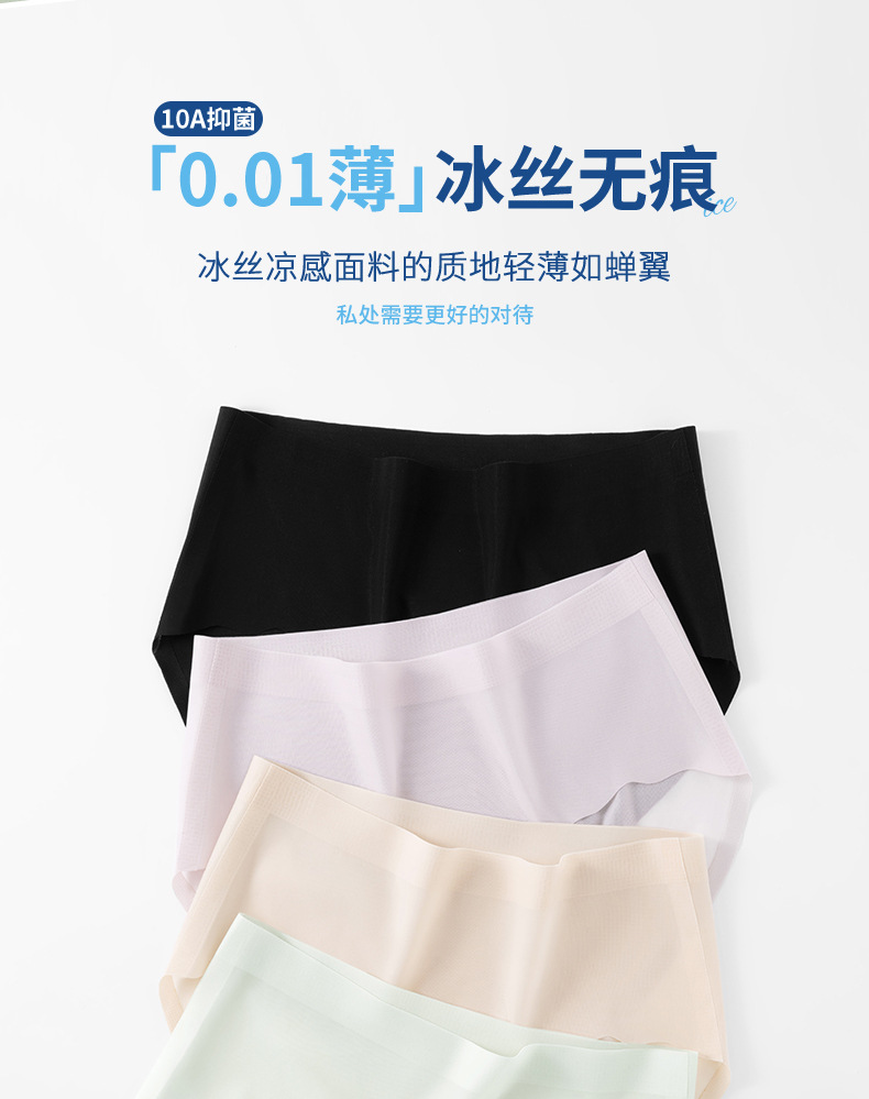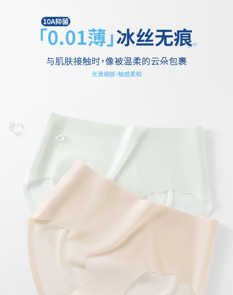Calzoncillos de seda de hielo para mujeres desnudas sin pellizcar nalgas 10A entrepierna antibacteriana sin costuras Calzoncillos de mujer transpirables sin costuras de cintura media de seda de hielo