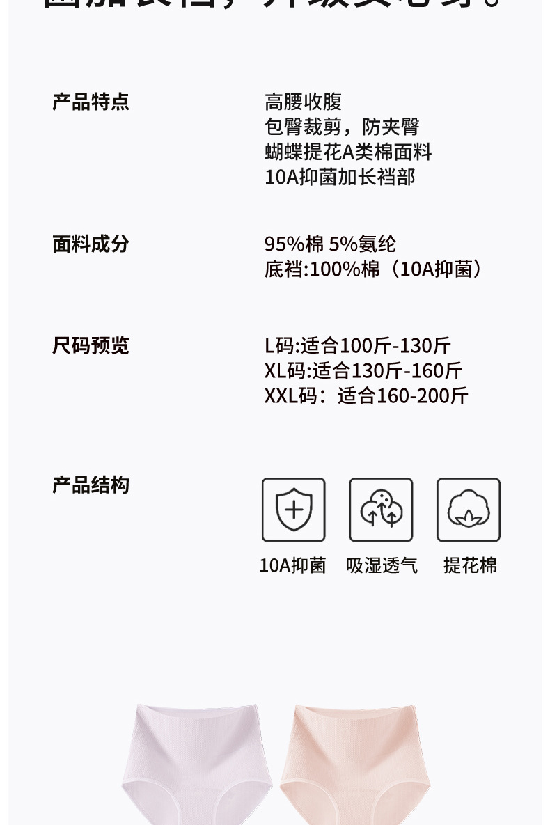 2025 nueva ropa interior de gran tamaño de cintura alta de algodón puro, entrepierna larga 200 kg, entrepierna antibacteriana de grado 10A, barriga, calzoncillos de mujer