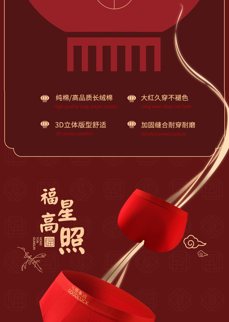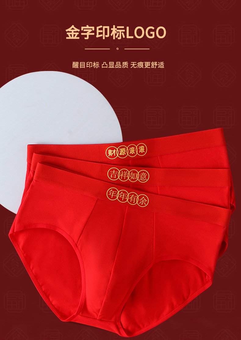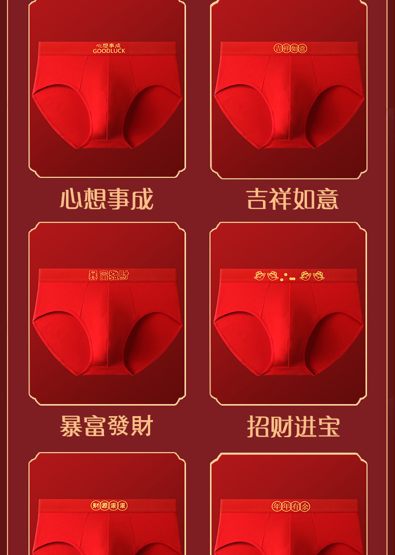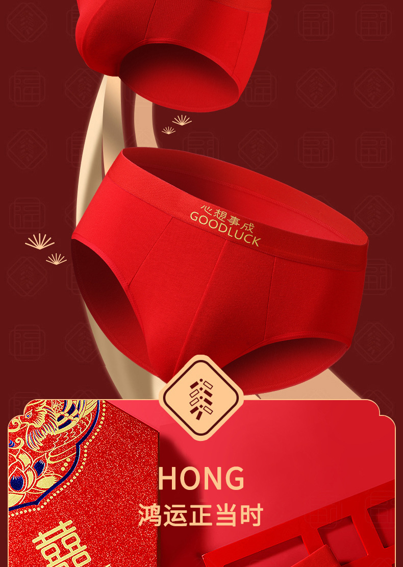 Año del Dragón año de nacimiento calzoncillos de los hombres pantalones cortos antibacterianos de algodón cabeza pantalones cortos sexy rojo brillante boda ropa interior de los hombres