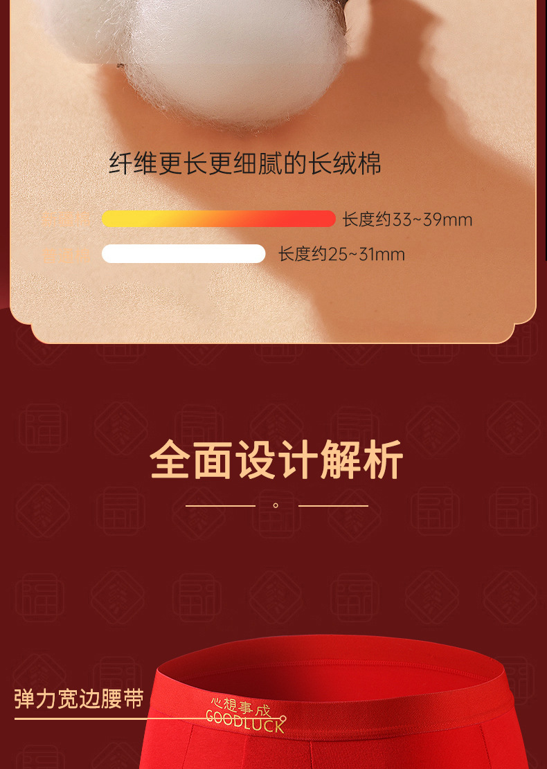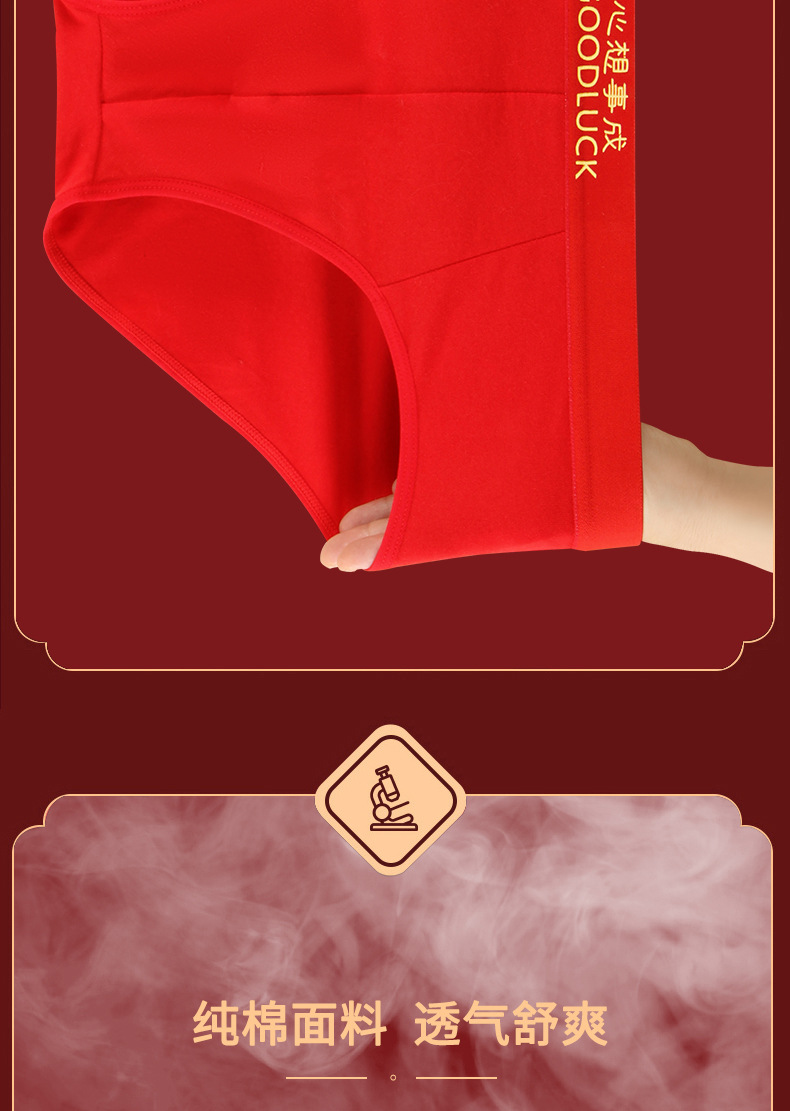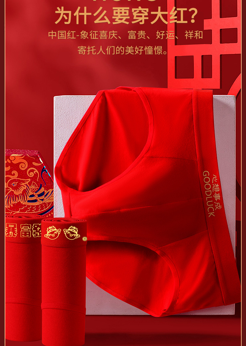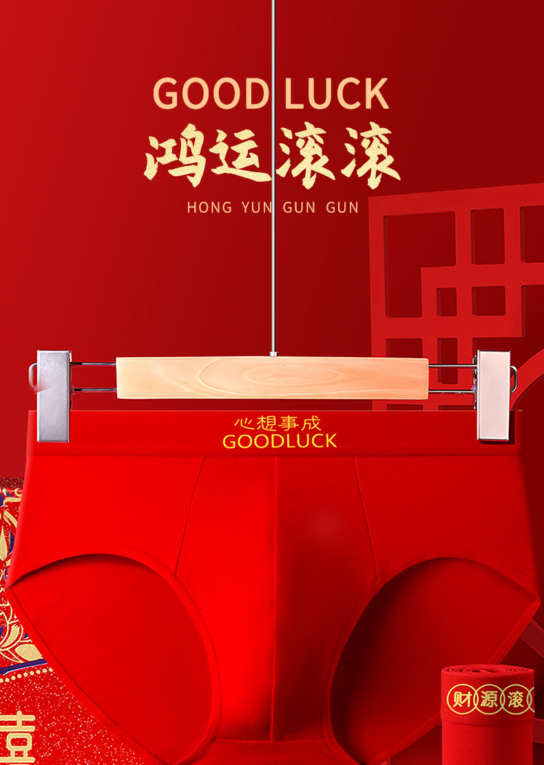 Año del Dragón año de nacimiento calzoncillos de los hombres pantalones cortos antibacterianos de algodón cabeza pantalones cortos sexy rojo brillante boda ropa interior de los hombres
