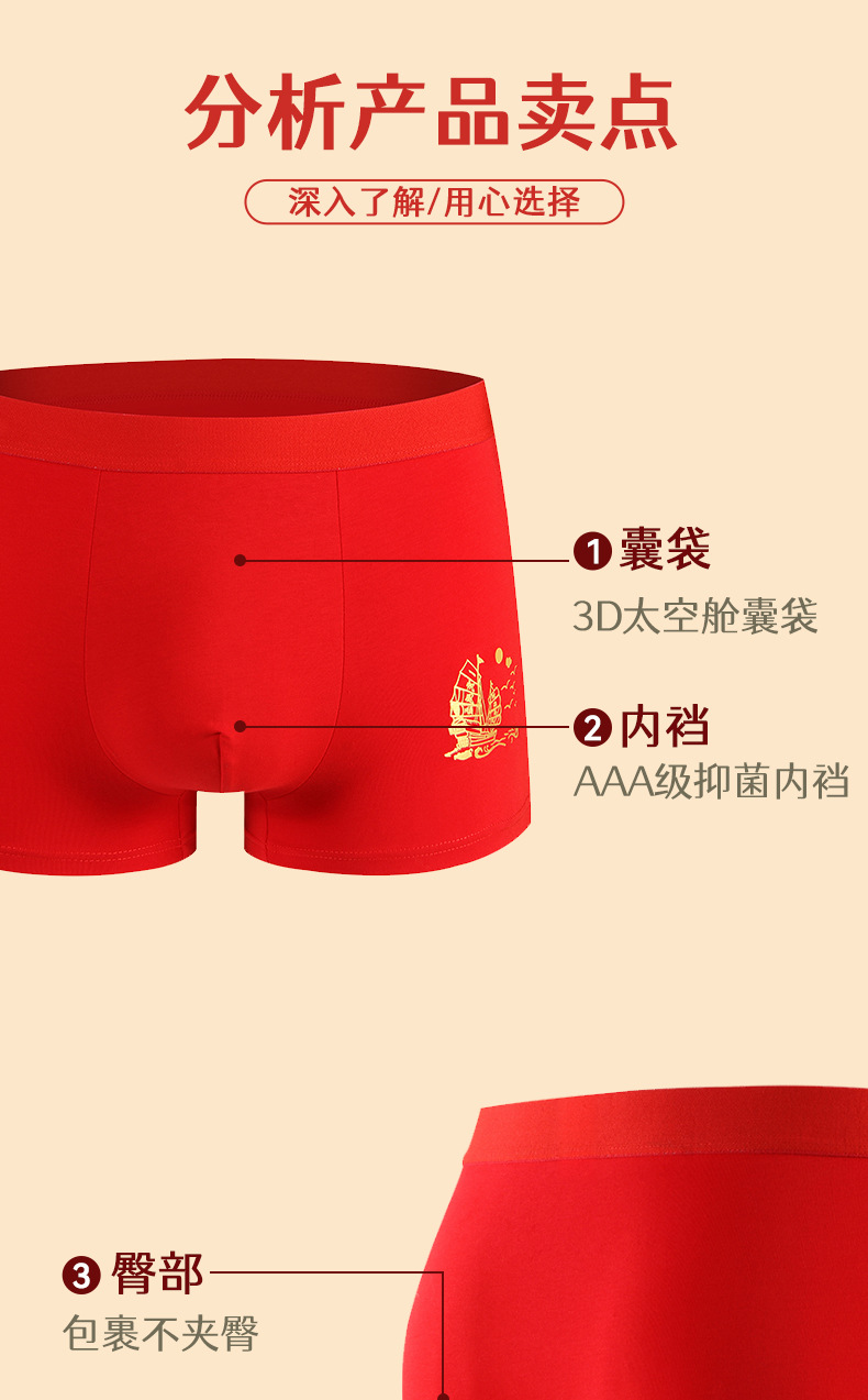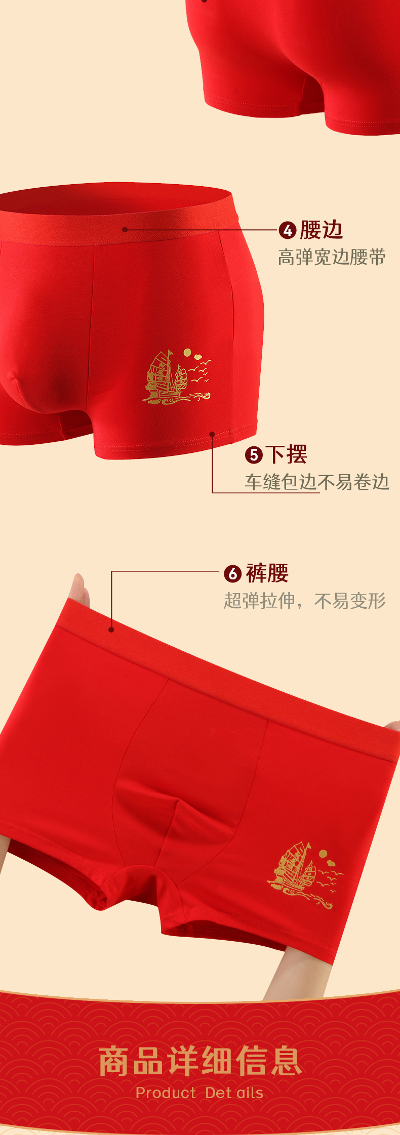 Año DE NACIMIENTO ropa interior de los hombres Algodón puro antibacteriano inferior entrepierna Boxer shorts rojo brillante boda boxeador ropa interior dragón de los hombres año