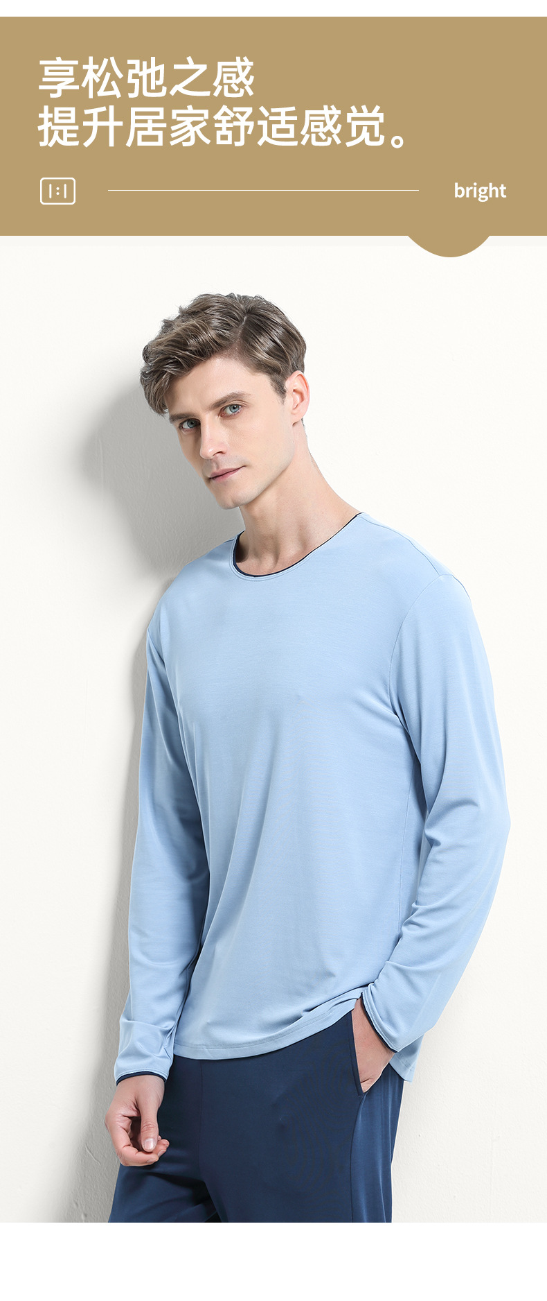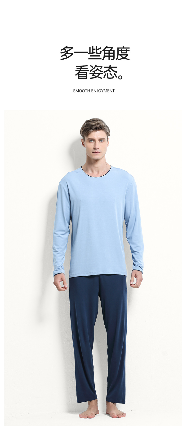 [Contador con el mismo estilo] Nuevo traje de pijama de hombre modal de doble cara 80 ropa de otoño delgada pantalones largos servicio a domicilio