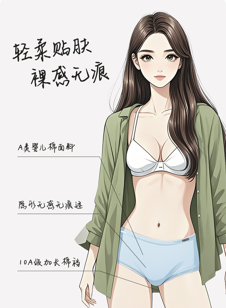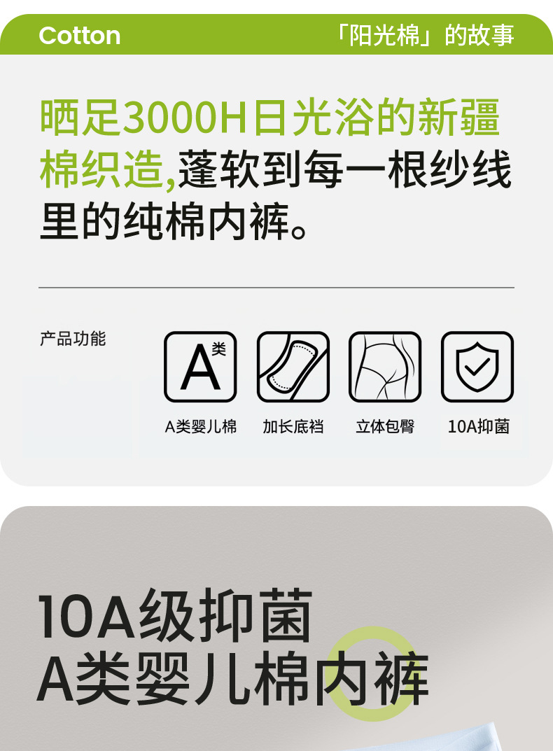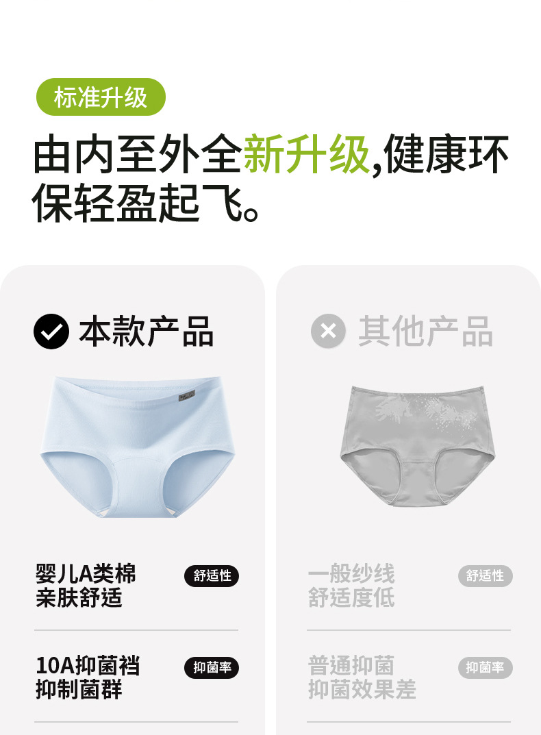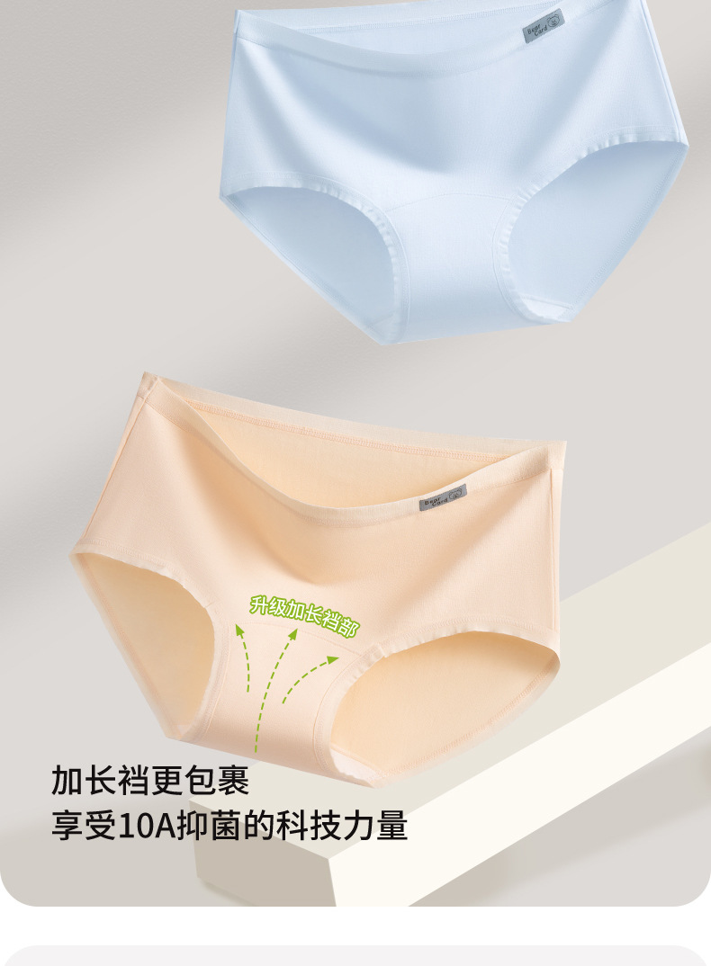 Bragas de algodón para bebés Clase A, entrepierna de algodón puro, entrepierna larga, sin costuras, transpirable y cómodo, deportes 10A, entrepierna antibacteriana, ropa interior de mujer