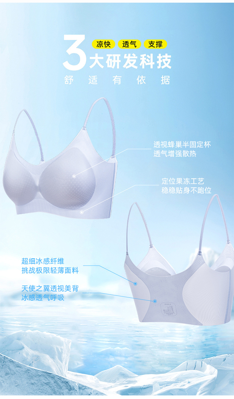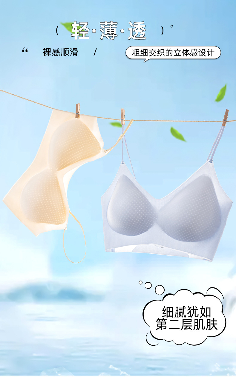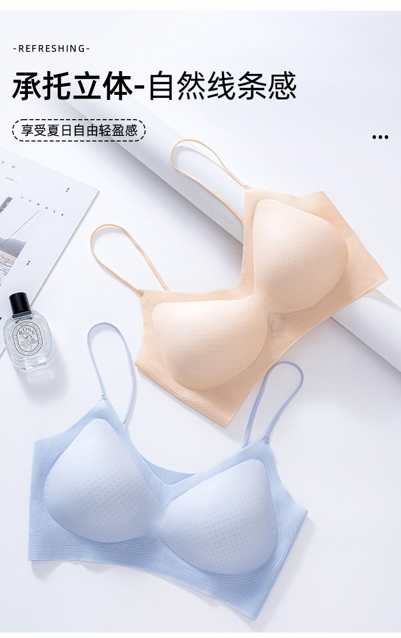 Ropa interior de seda helada, sujetador femenino, estilo ultrafino de verano, sin aros de acero, sin costuras, tirantes deportivos, tirantes finos, transpirables
