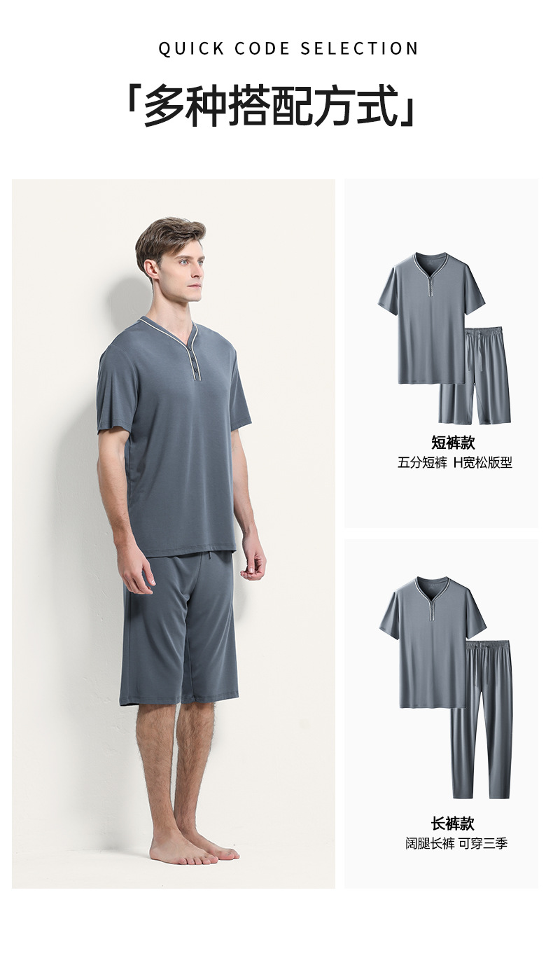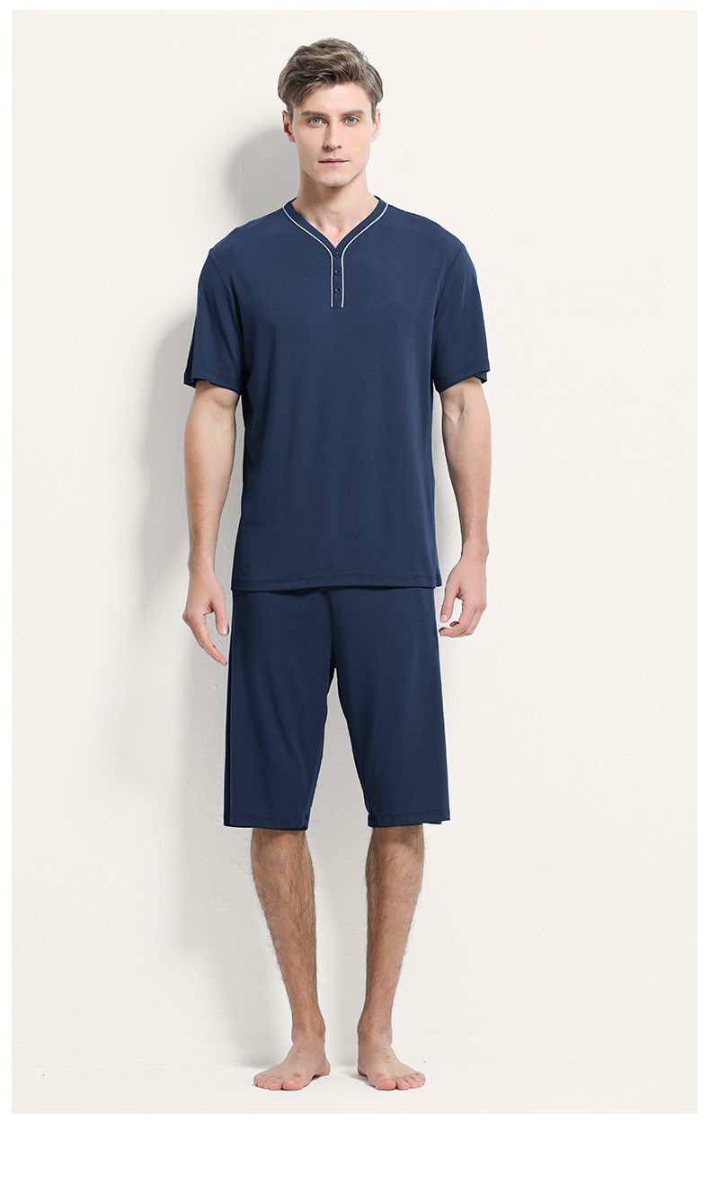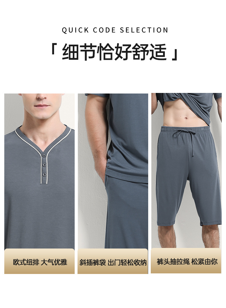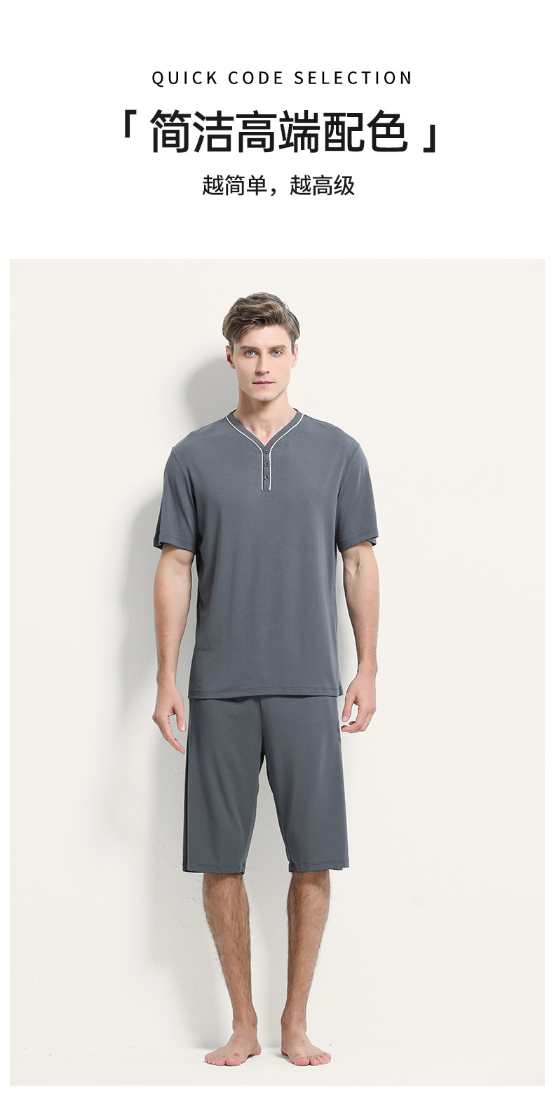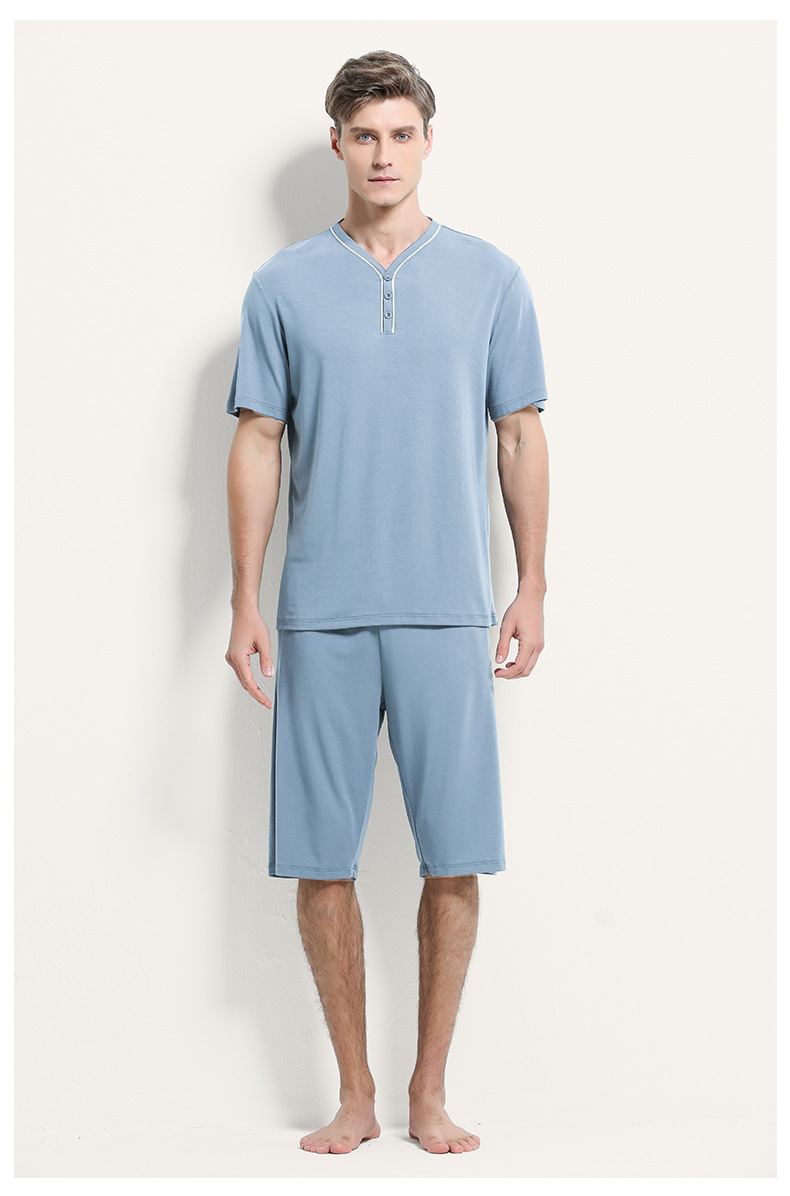 [Mismo estilo en mostrador] Conjunto de pijama de pantalones cortos finos de manga corta para hombre, modal de doble cara, primavera y verano, 80 unidades