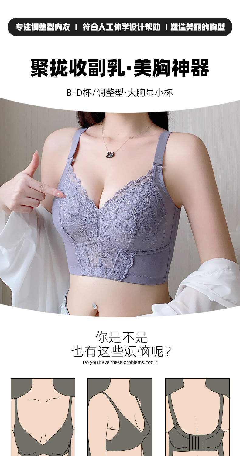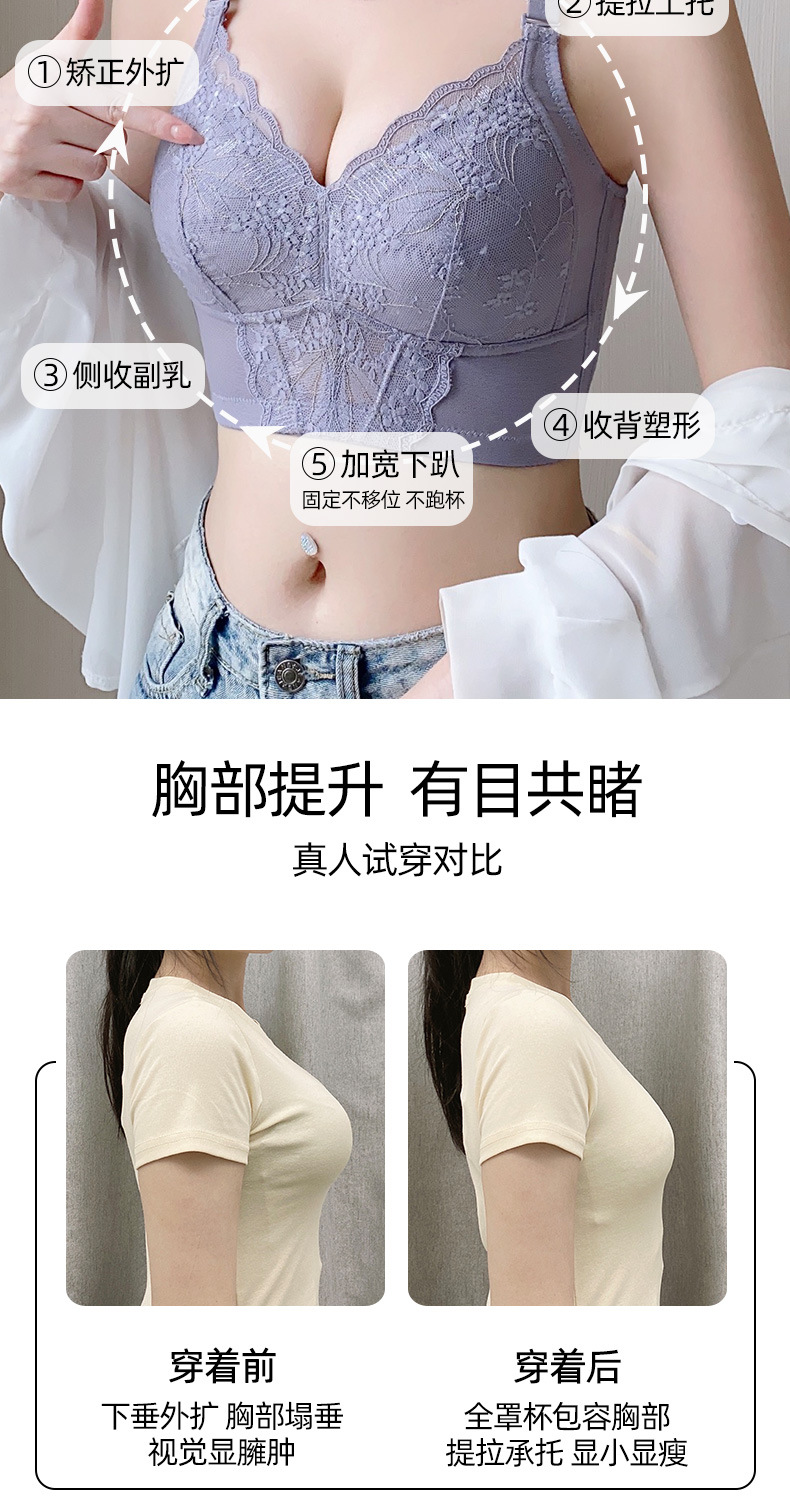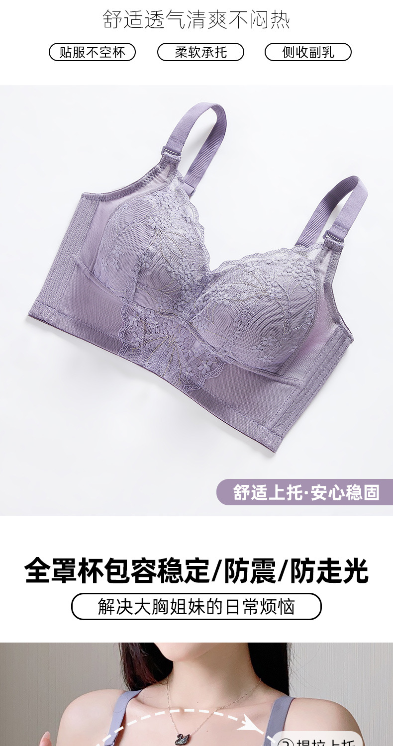 Ropa interior fina de primavera, chaleco para mujer, sujetador de pecho integrado, sujetador de copa completa de encaje anti-caída