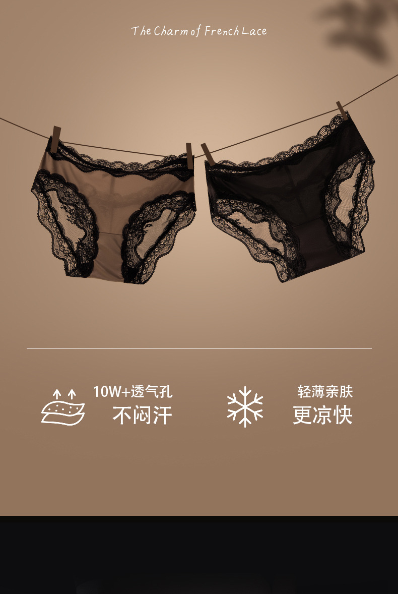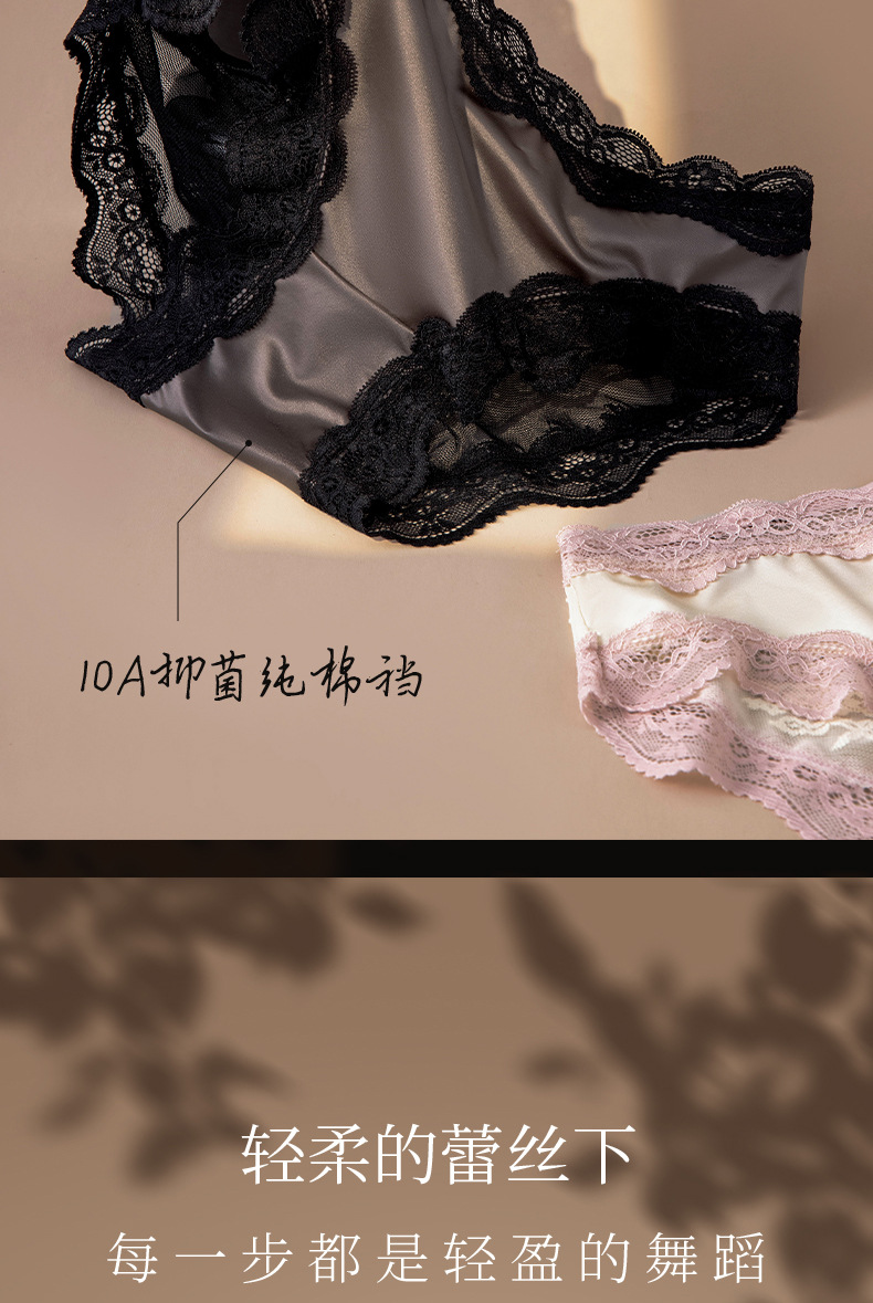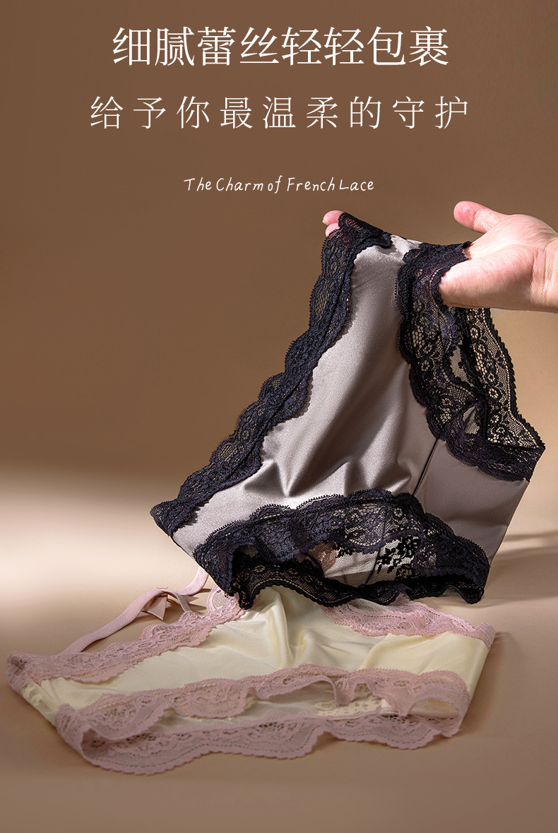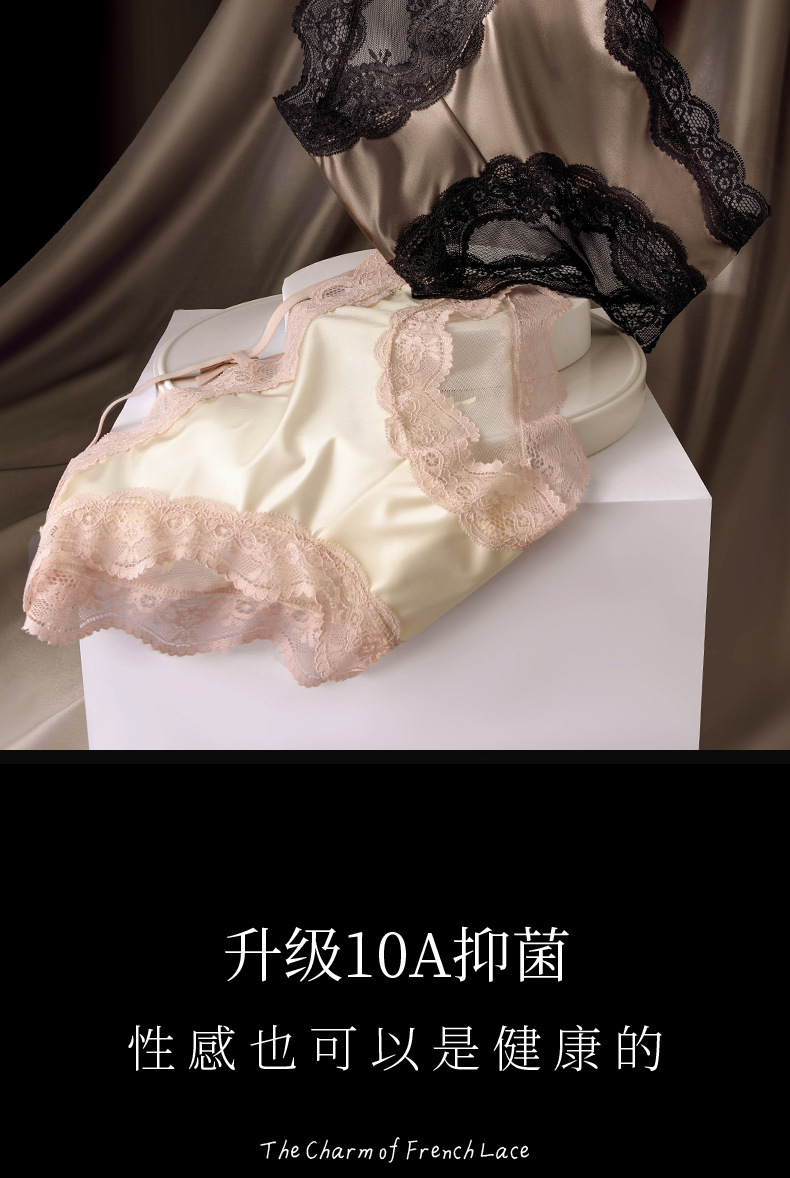 Encaje francés sexy satén seda de hielo encaje ropa interior de mujer entrepierna de algodón puro entrepierna antibacteriana ropa interior roja para mujer