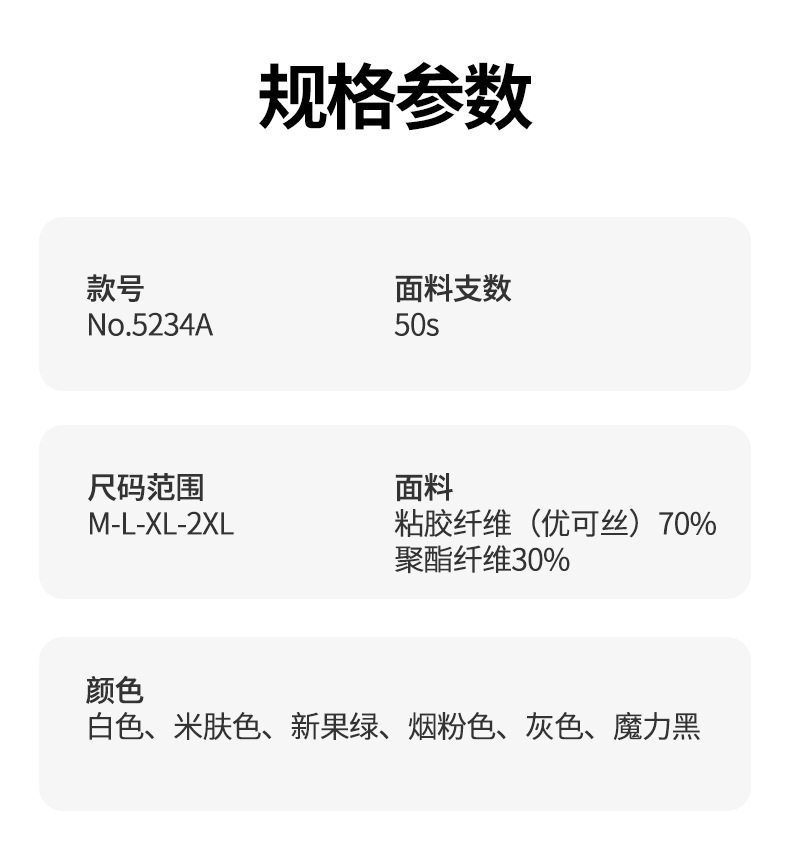 | Colores | Blanco-Cuello redondo,Cuello redondo de piel de arroz,Nuevo verde fruta-cuello redondo,Cuello redondo rosa ahumado,Gris-cuello redondo,Negro-cuello redondo,Blanco-Cuello en U,Color de piel de arroz-cuello U,Nuevo verde fruta-cuello U,Cuello en U rosa ahumado,Gris-Cuello en U,Negro-Cuello en U |