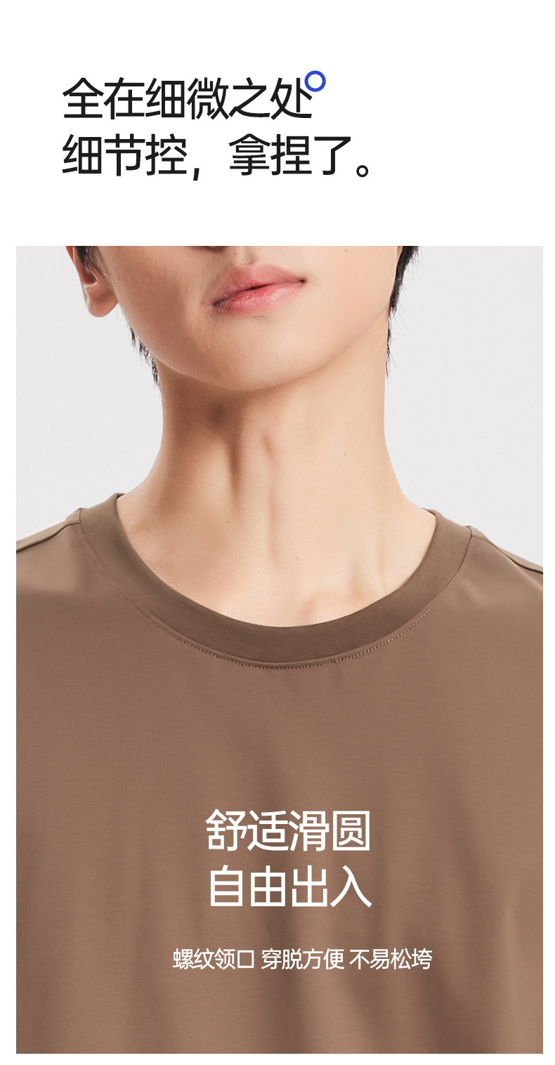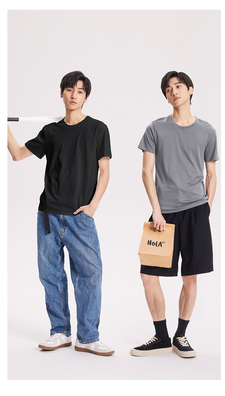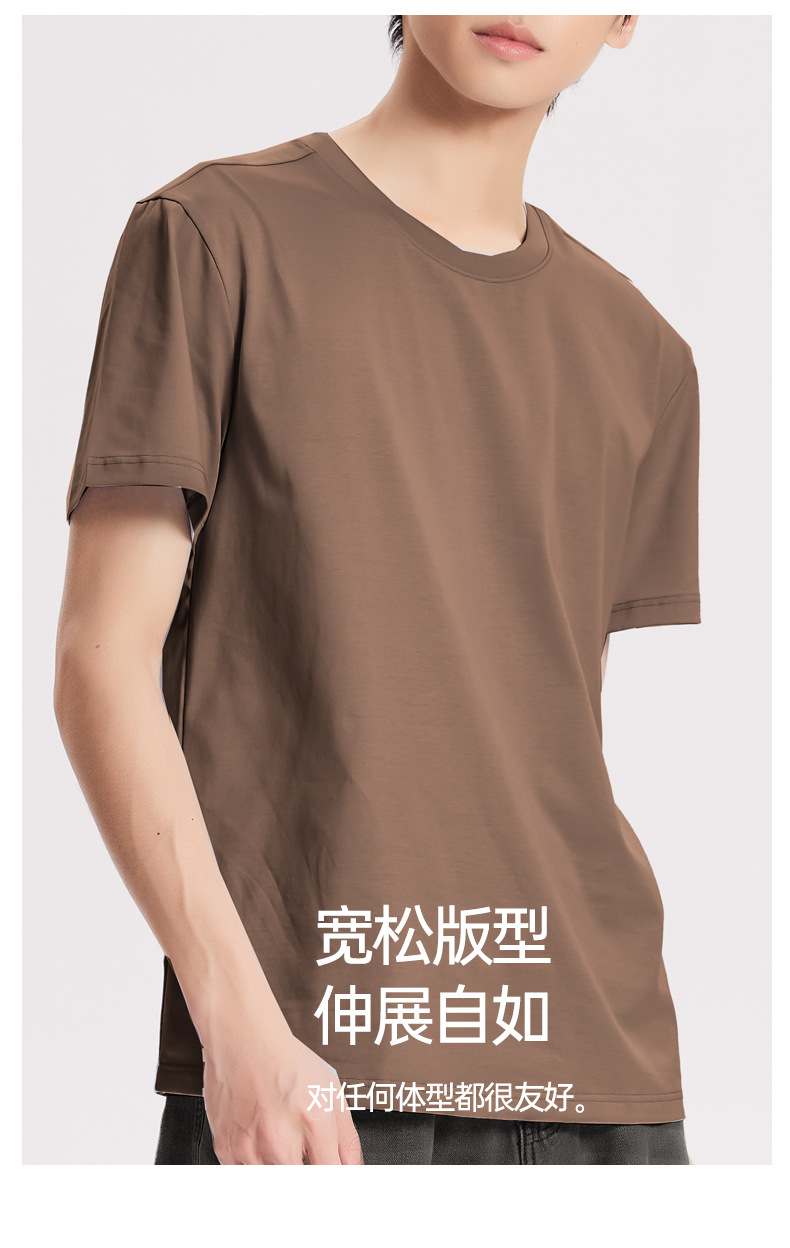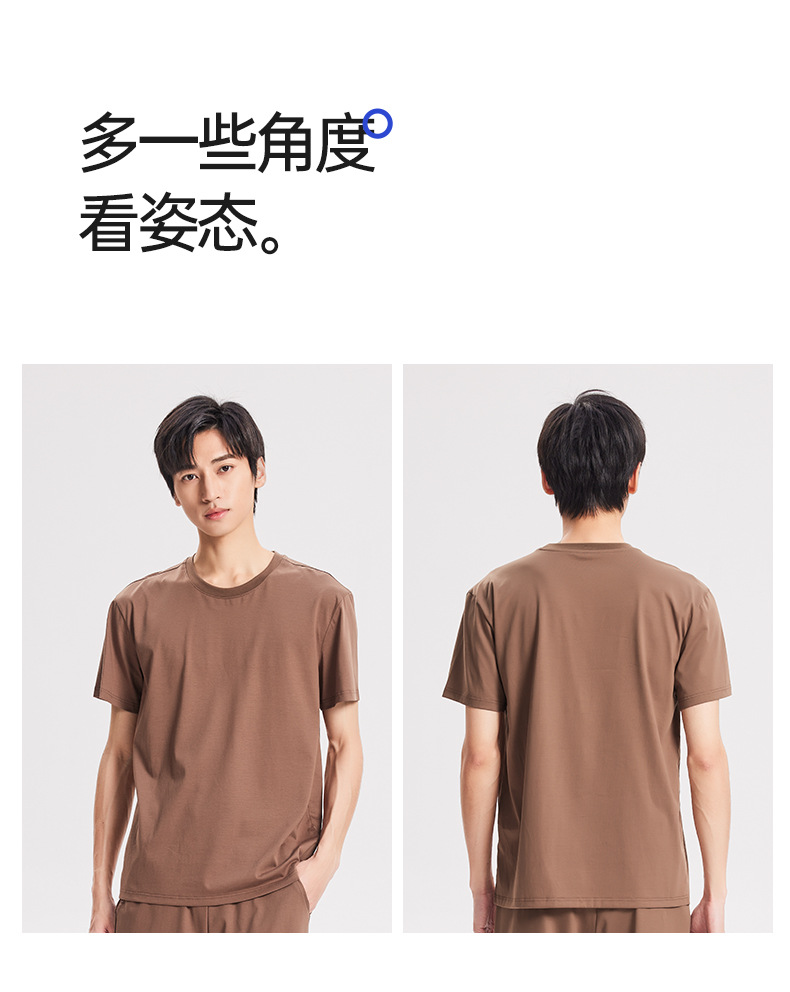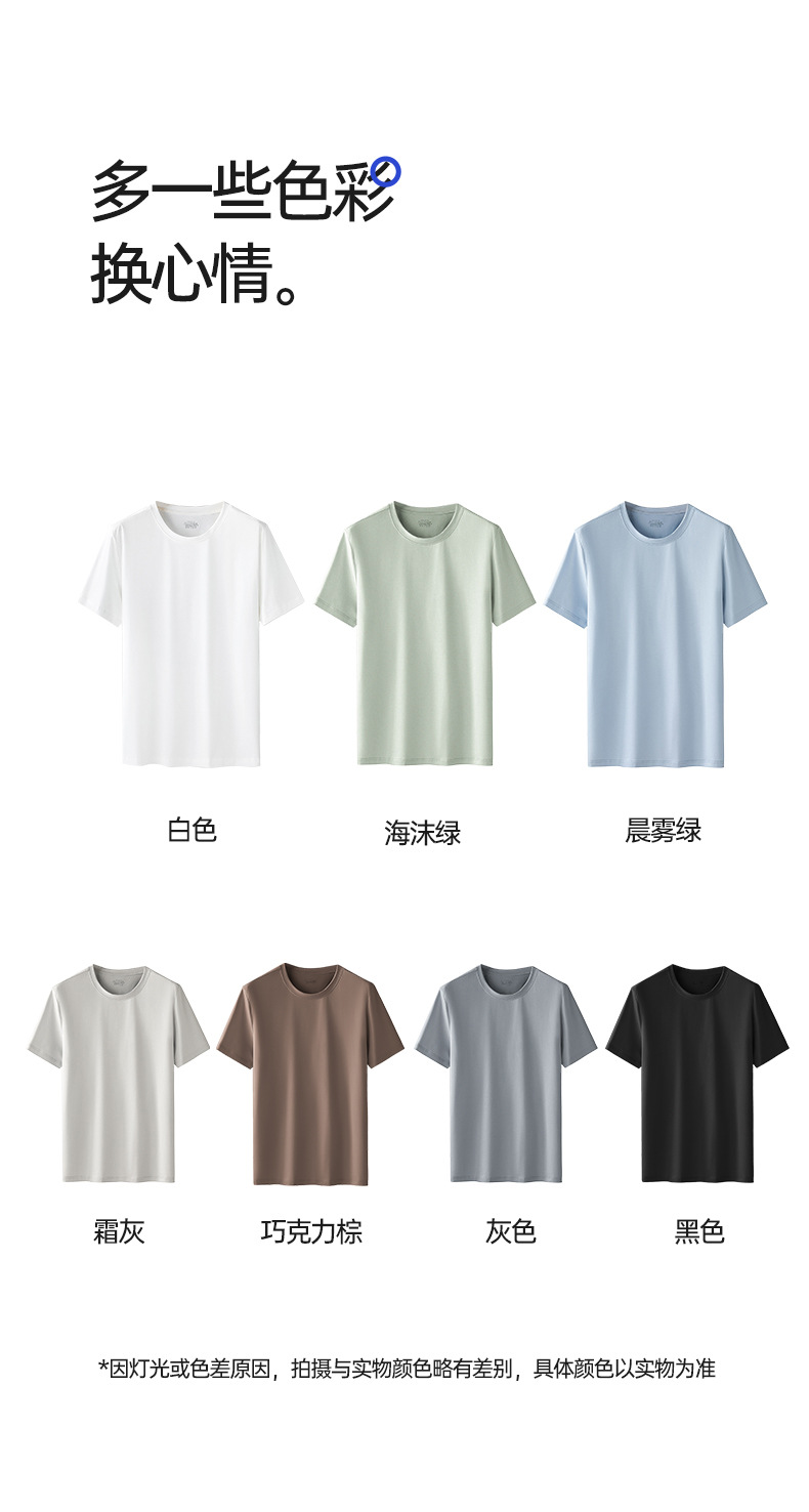 Nueva camiseta fresca de algodón mercerizado de primavera y verano para hombres, pijamas finos de color sólido, cuello redondo transpirable, top de manga corta