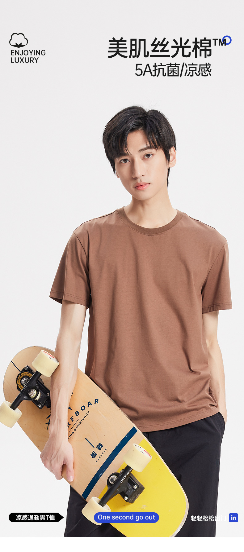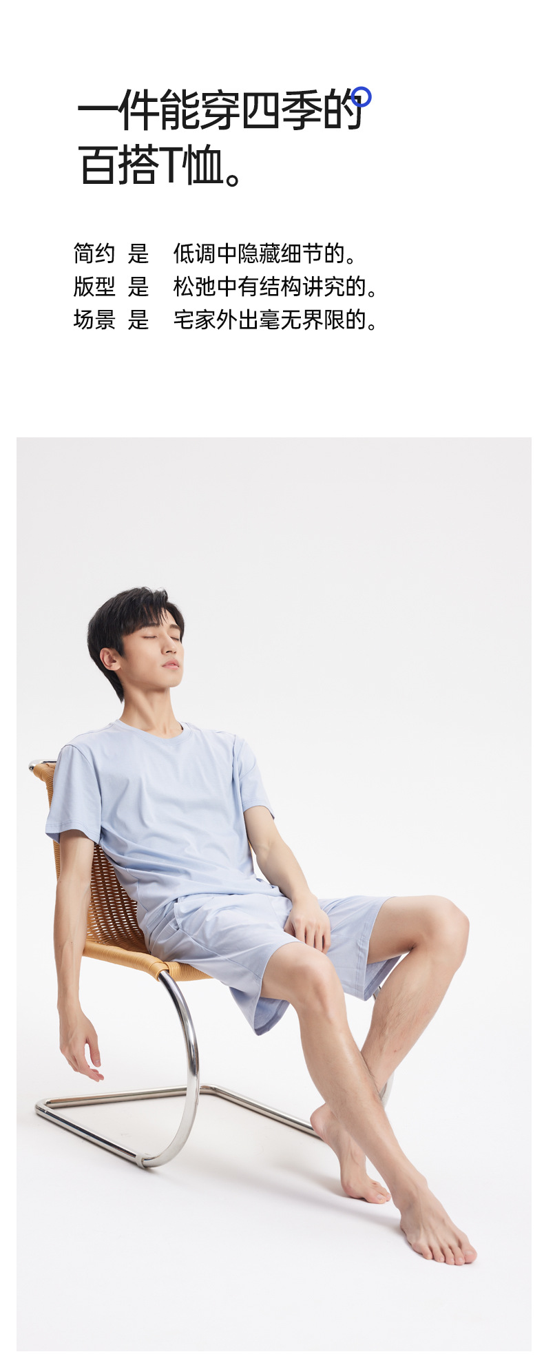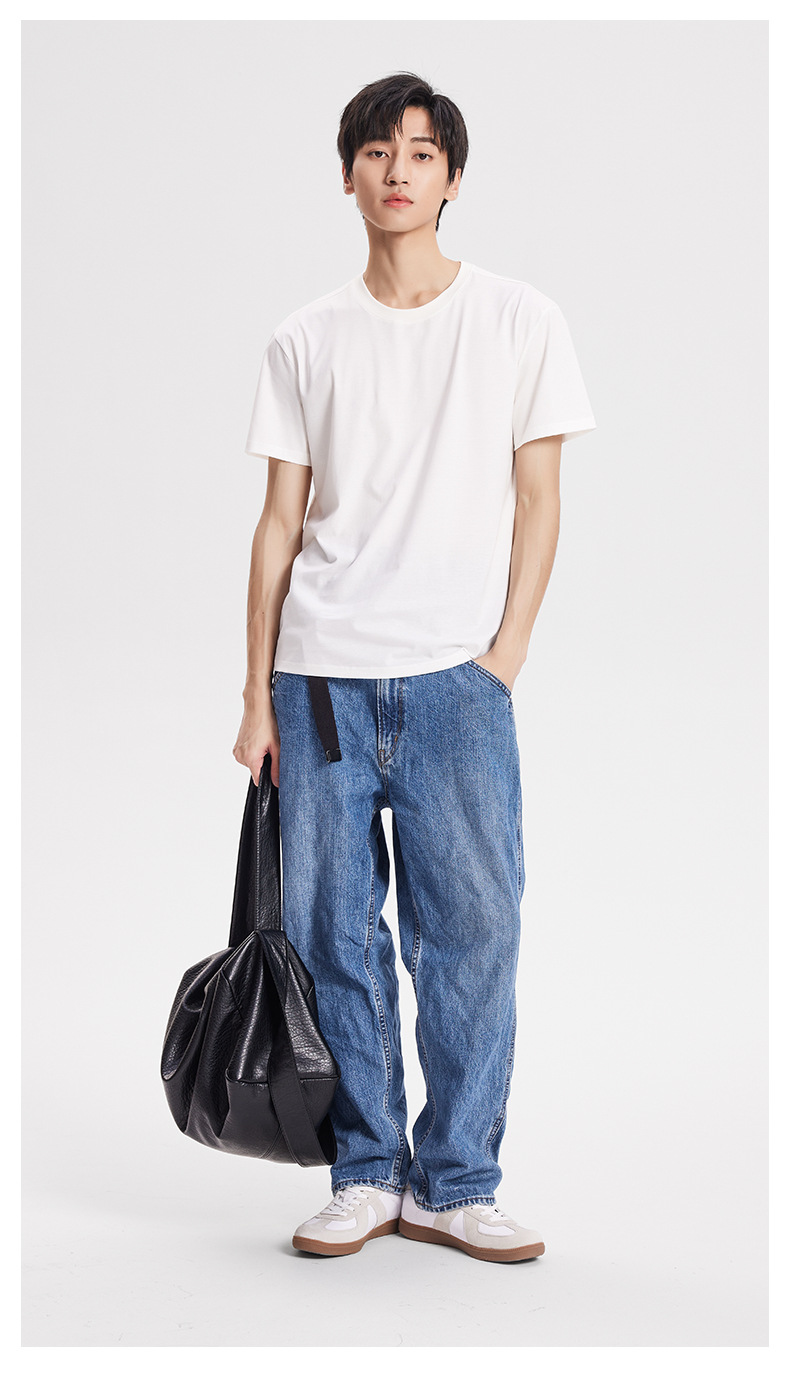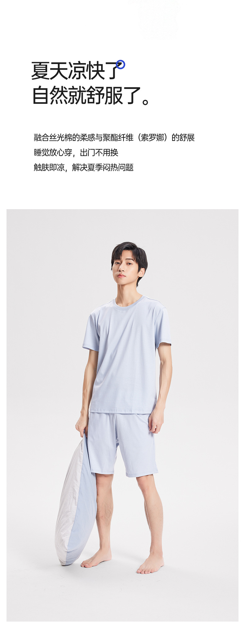 Nueva camiseta fresca de algodón mercerizado de primavera y verano para hombres, pijamas finos de color sólido, cuello redondo transpirable, top de manga corta