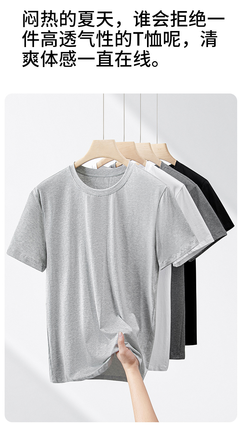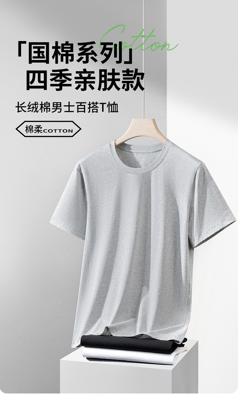 Camiseta de manga corta para hombre de primavera y verano de algodón de Xinjiang, top, cuello redondo, color sólido, camisa de fondo deportiva informal de media manga transpirable delgada