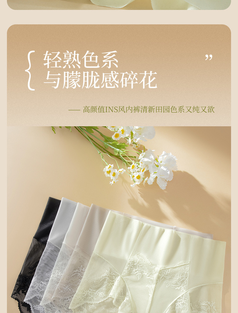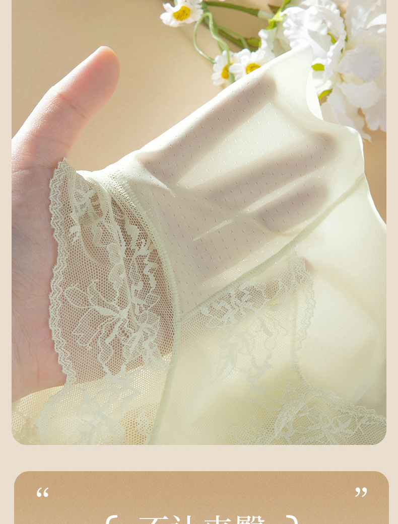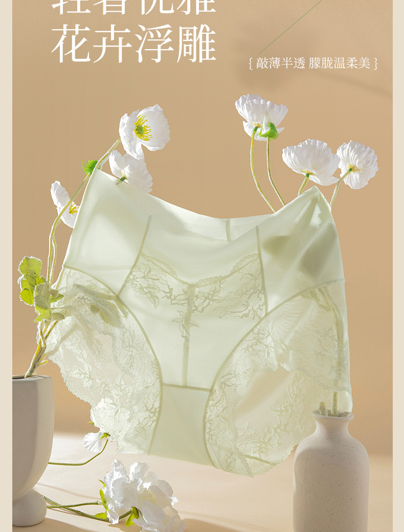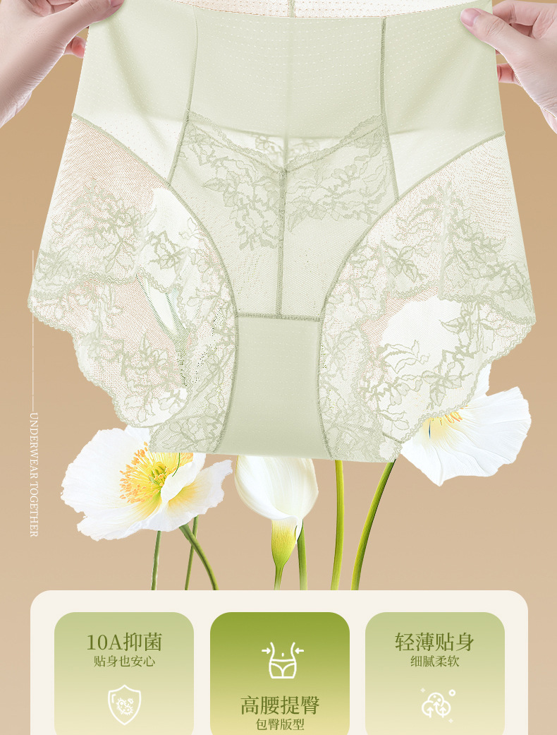 Ropa interior de encaje francés sin costuras de seda de hielo para mujer, cintura alta para mujer, abdomen, glúteos, ácido poliláctico, entrepierna antibacteriana, ropa interior para mujer