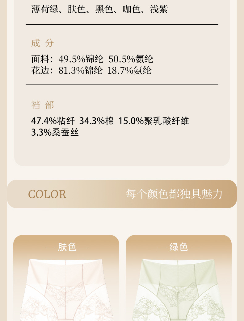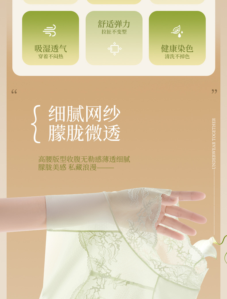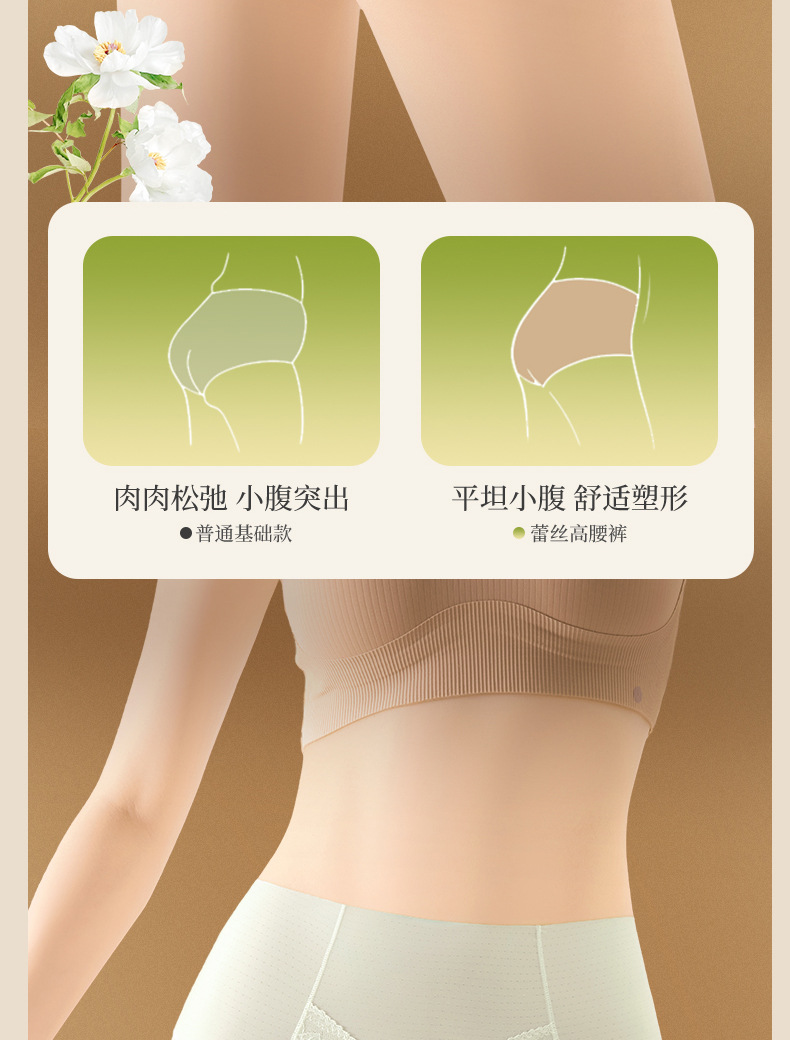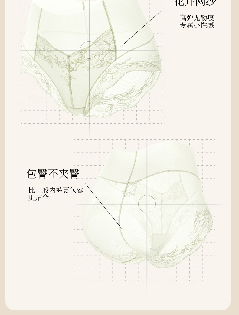 Ropa interior de encaje francés sin costuras de seda de hielo para mujer, cintura alta para mujer, abdomen, glúteos, ácido poliláctico, entrepierna antibacteriana, ropa interior para mujer