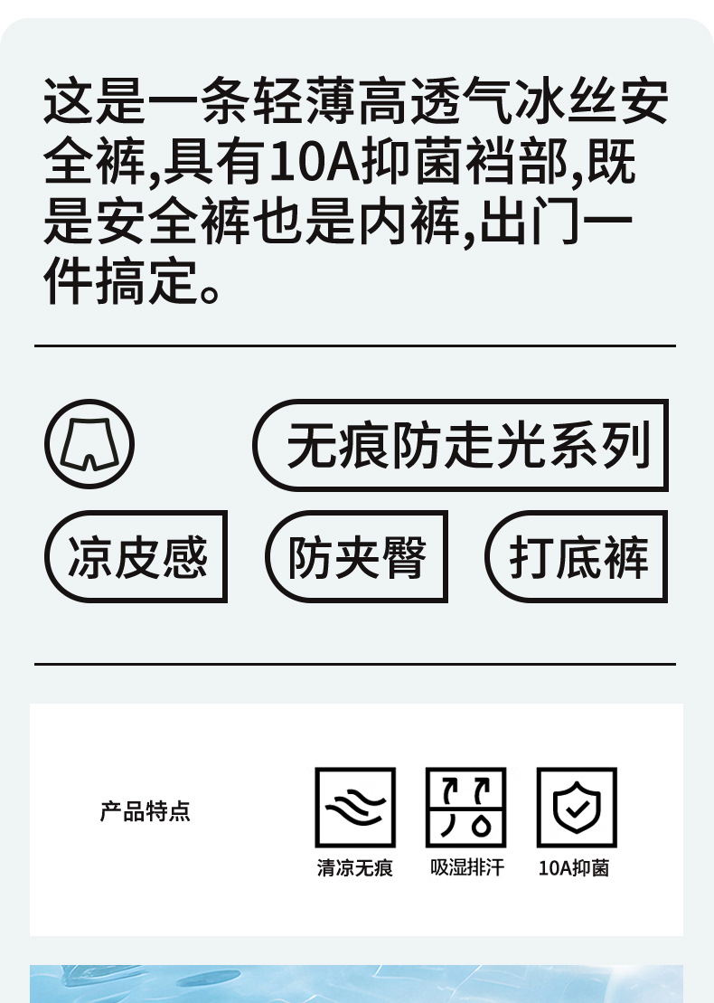 Pantalones de seguridad anti-luz, ropa interior, leggings finos sin costuras dos en uno, bóxer de seda helada, pantalones de seguridad para mujer de verano