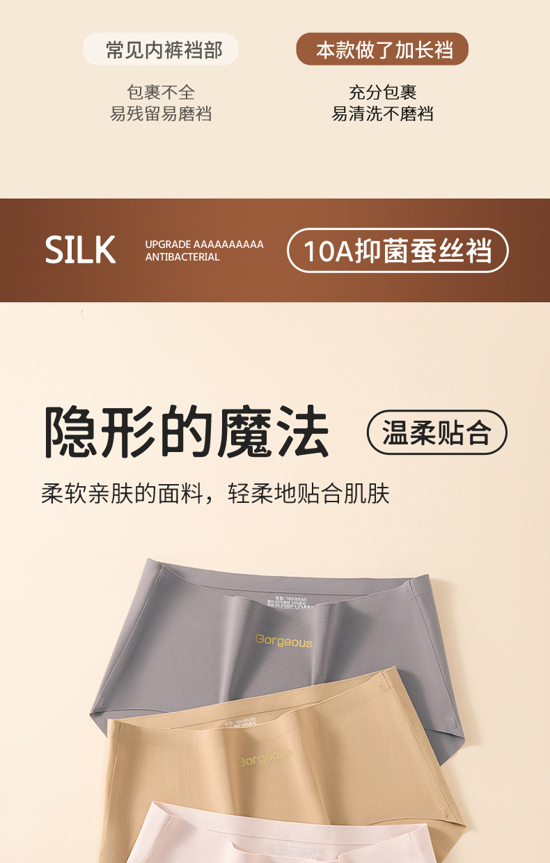 Seda de morera entrepierna alargada entrepierna antibacteriana sin costuras hilo de hielo ejercicio de yoga sin costuras niñas calzoncillos de mujer sin costuras sin caderas
