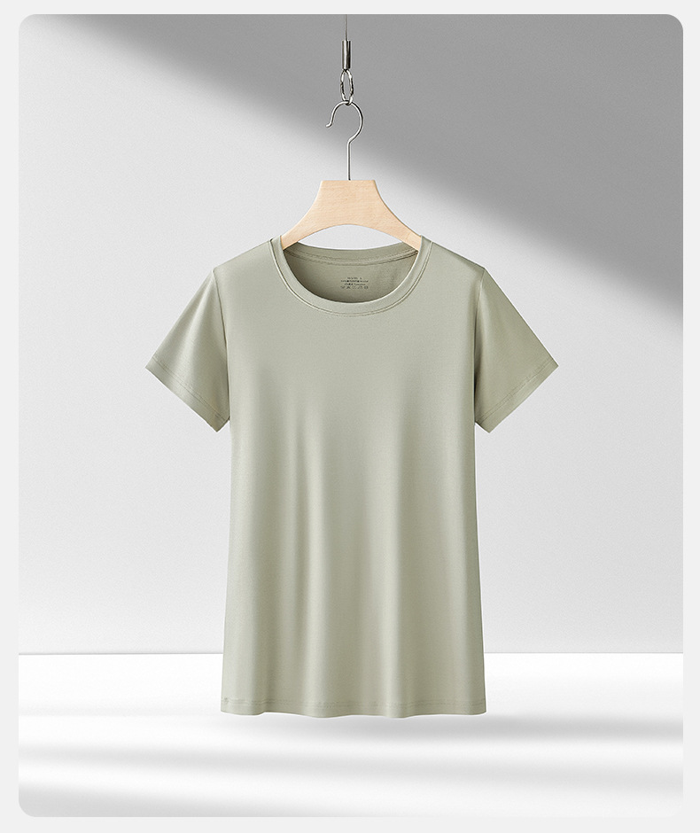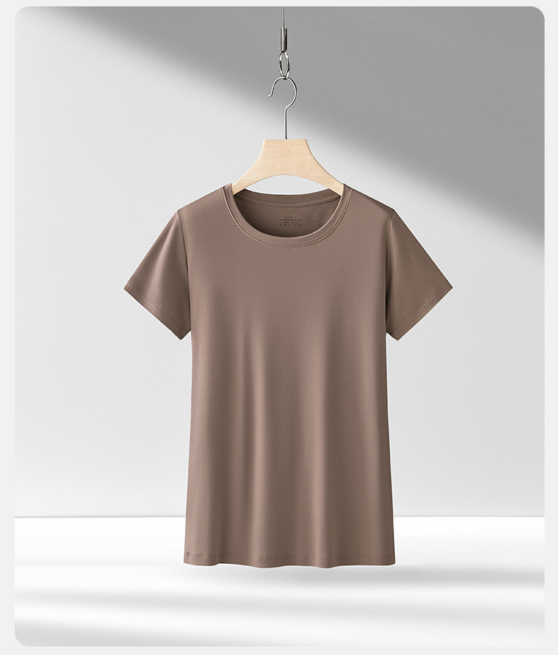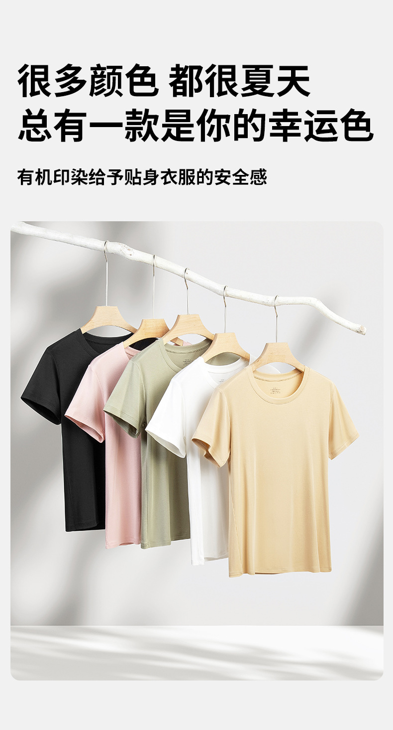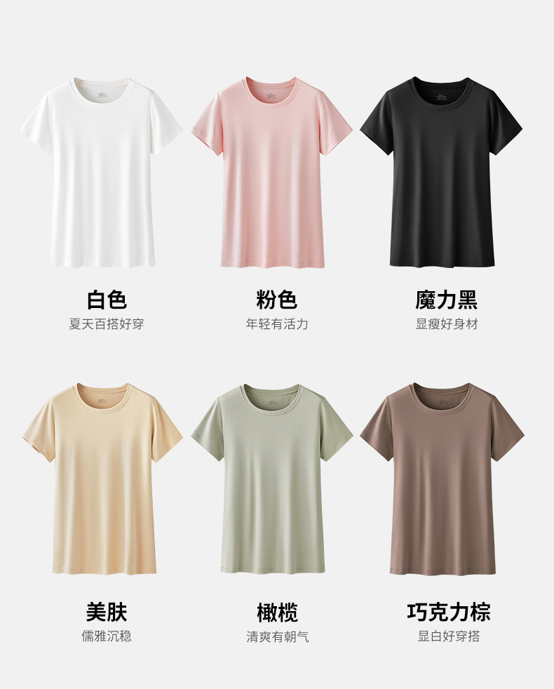 Nueva modal primavera y el verano de las mujeres base de manga corta de color sólido cuello redondo puede salir de punto de camisa de fondo fino agradable a la piel