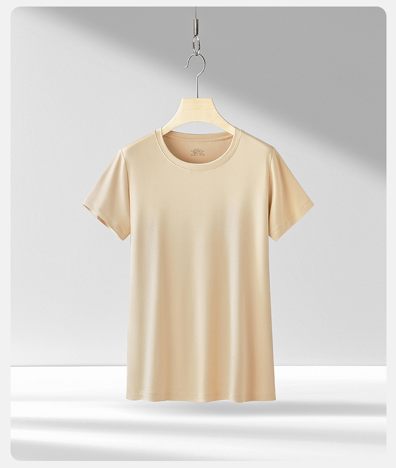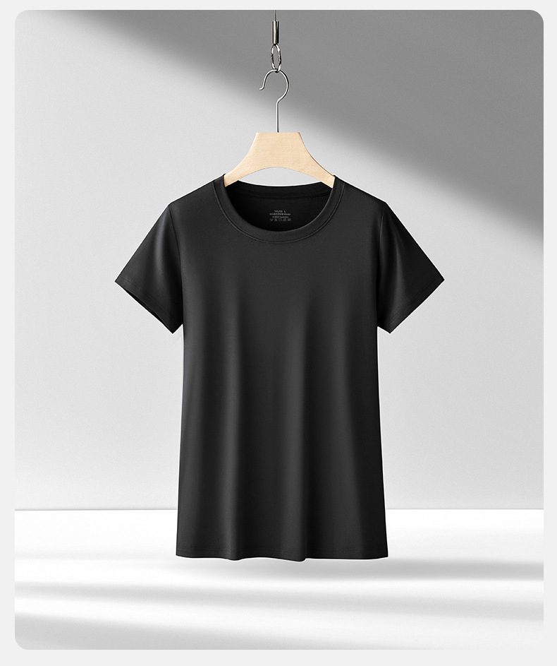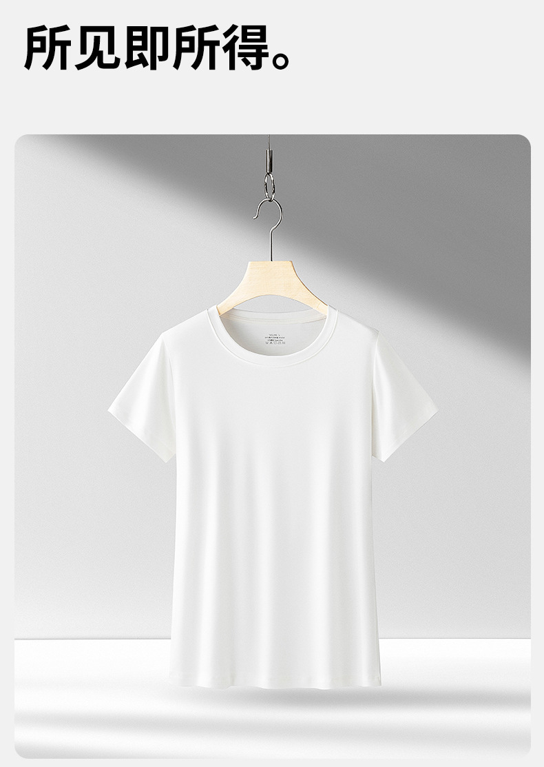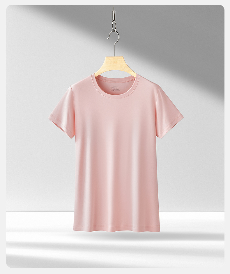 Nueva modal primavera y el verano de las mujeres base de manga corta de color sólido cuello redondo puede salir de punto de camisa de fondo fino agradable a la piel