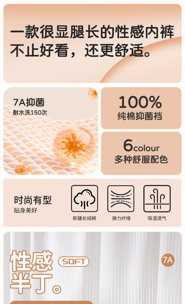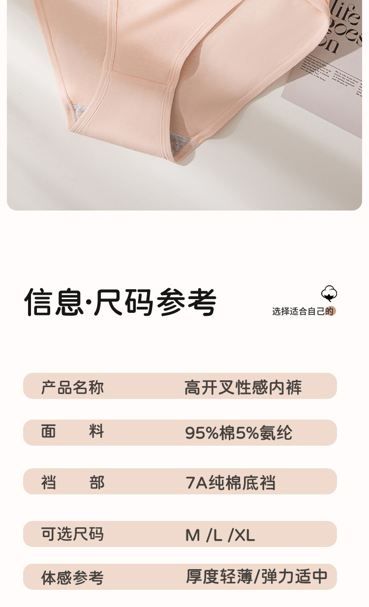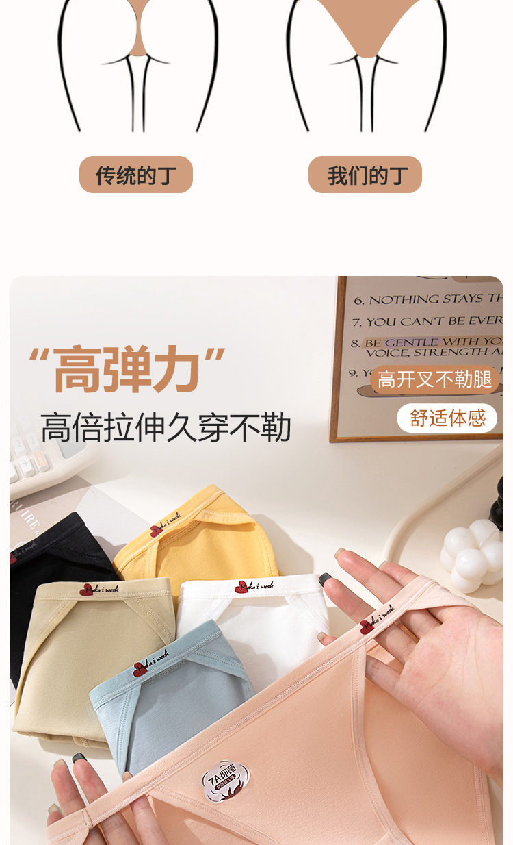 Algodón puro sexy de alta apertura algodón de grado 7A antibacteriano cómodo y transpirable puro deseo niña ropa interior sin costuras refrescante
