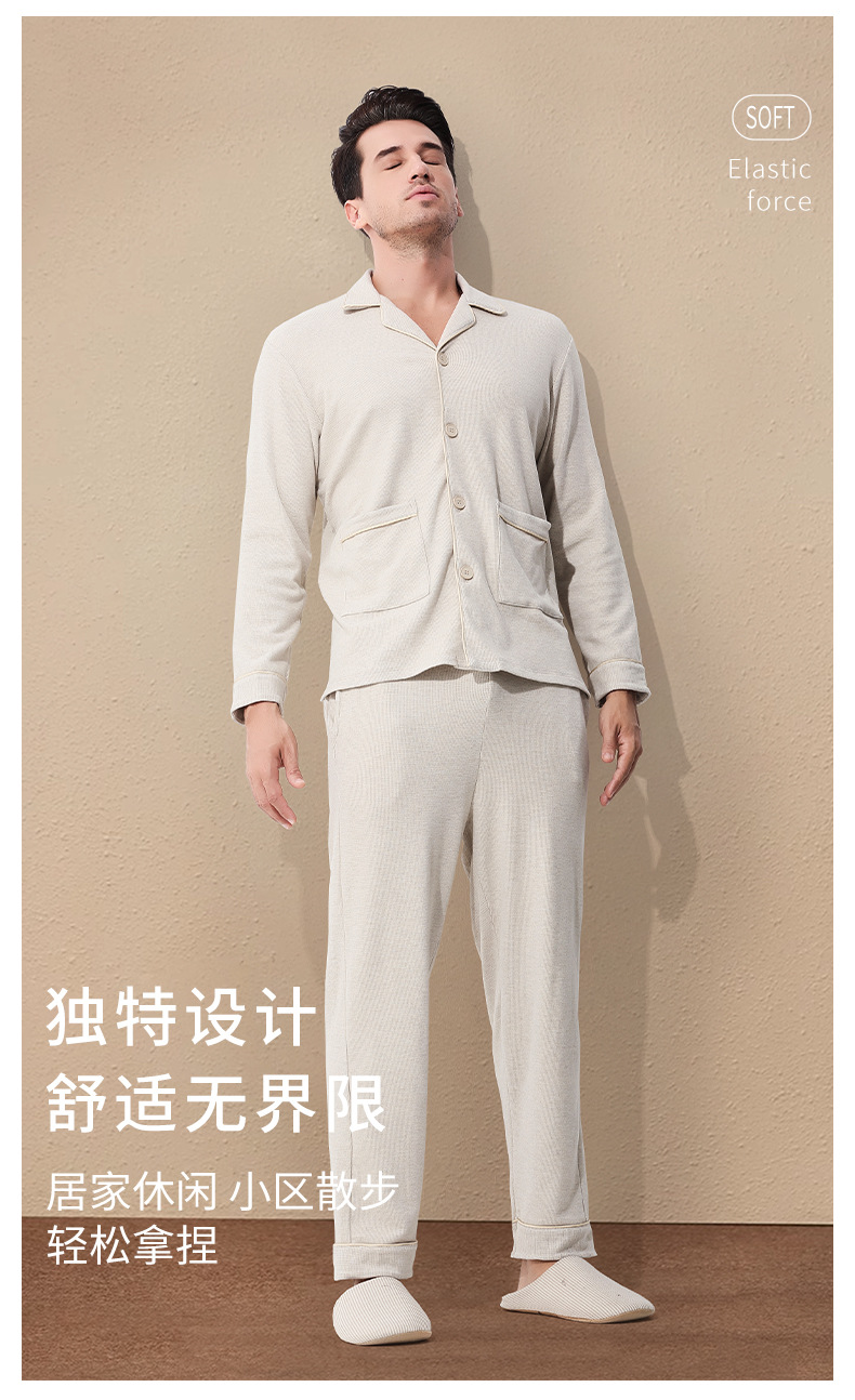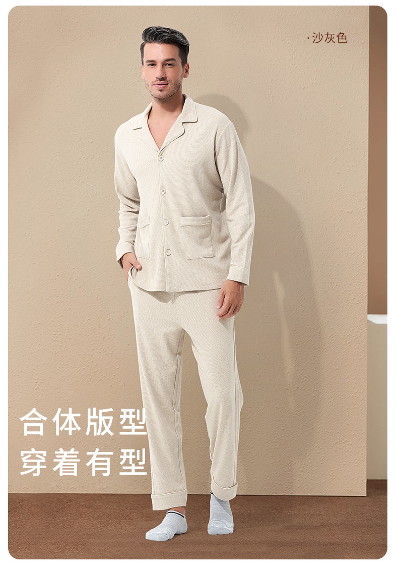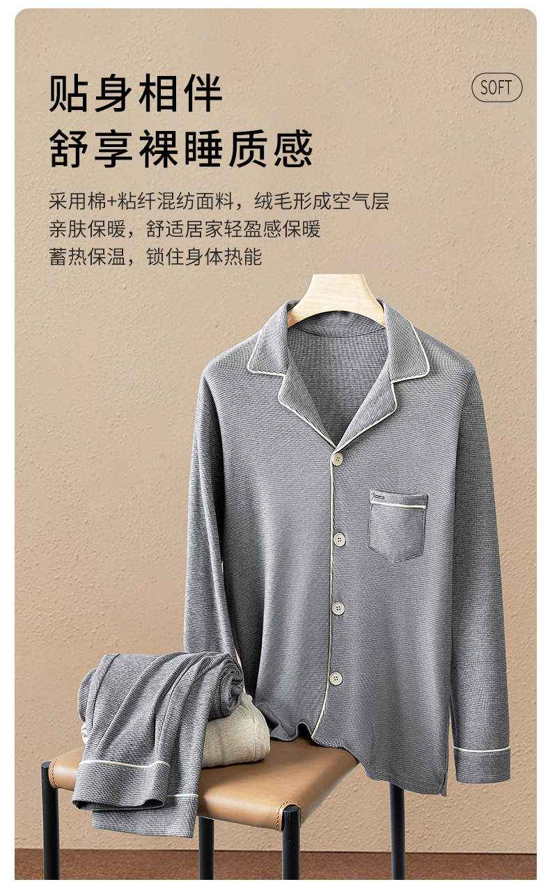Meijabei rejilla jacquard Otoño e Invierno de los hombres al aire libre desgaste del hogar cardigan pijama traje forrado de lana engrosada en stock pelo rápido